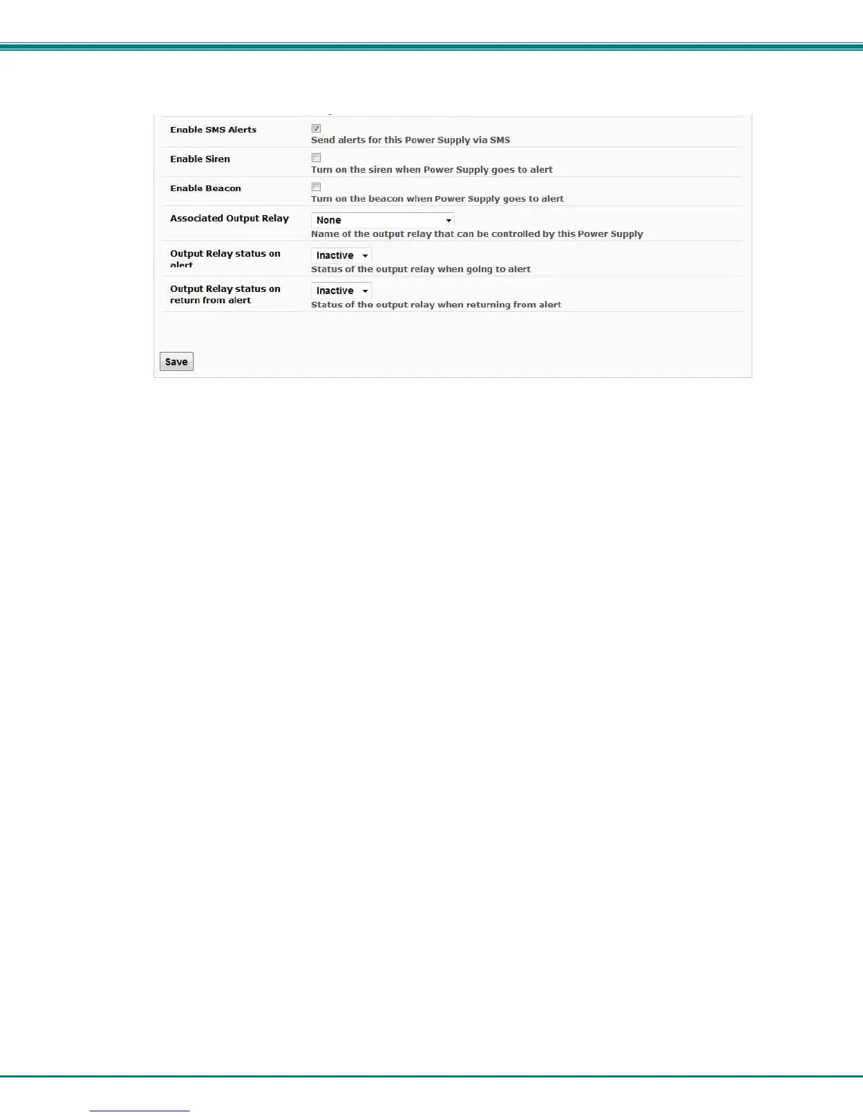 Note: If alerts for a power supply are disabled, the associated output action will still take place. There just won't be any