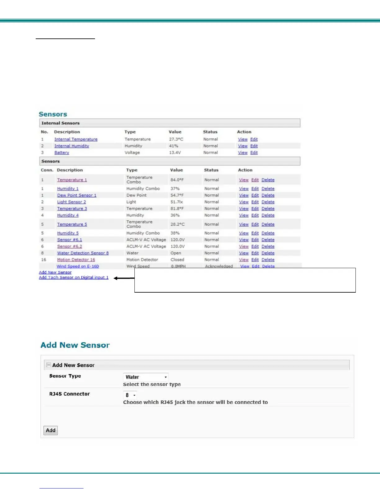 be automatically detected by the RJ45 Sensor port. The sensors have to be manually added to the unit list by the administrator or
