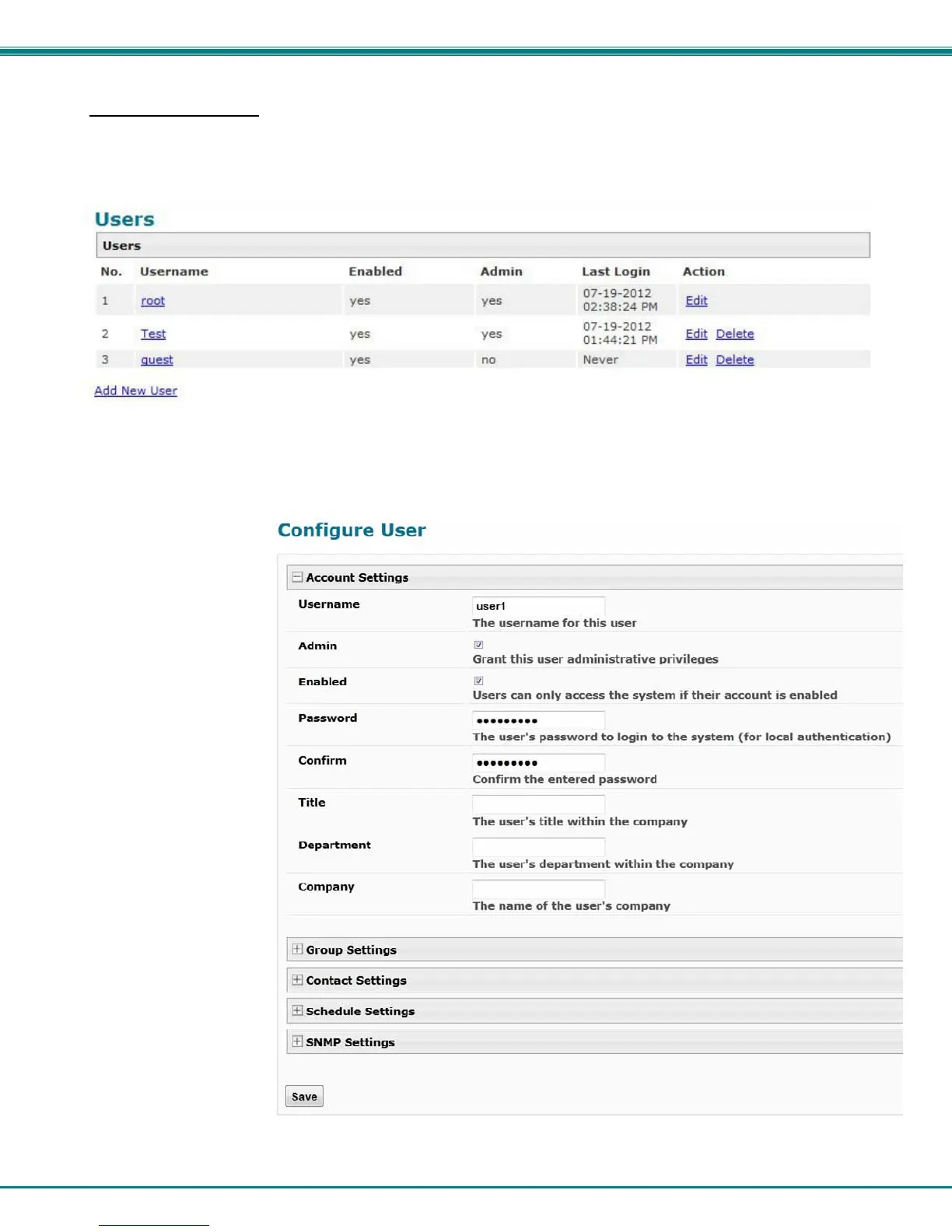 To add a user, click on the “Add New User” link.