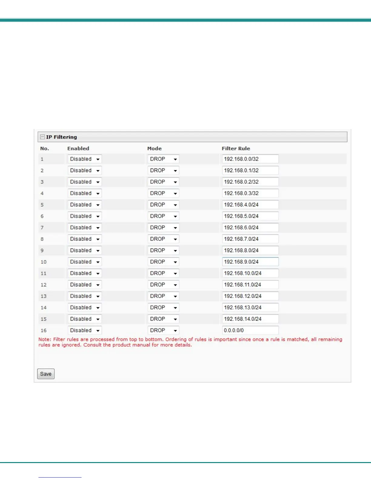 Figure 79- Security Configuration- IP Filtering Rules