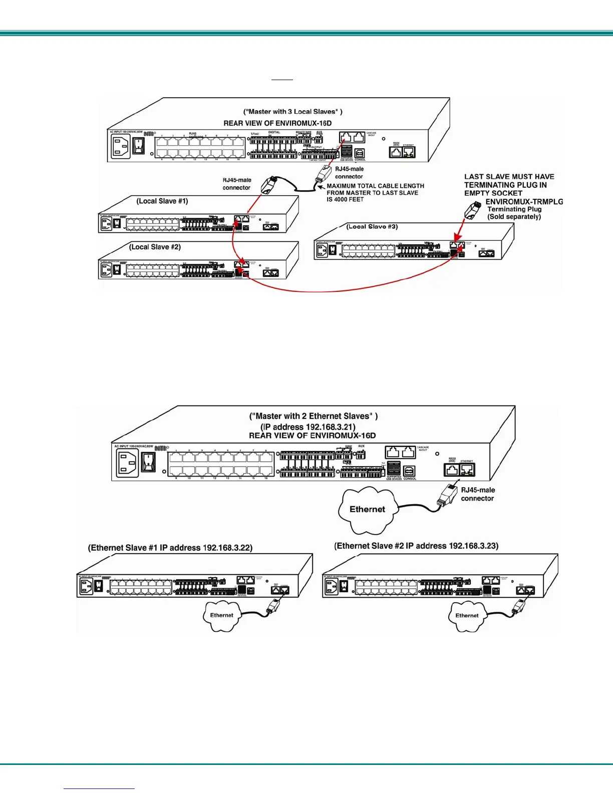 3. Each ENVIROMUX unit configured as an Ethernet Slave must be given a unique IP address. Connection of an