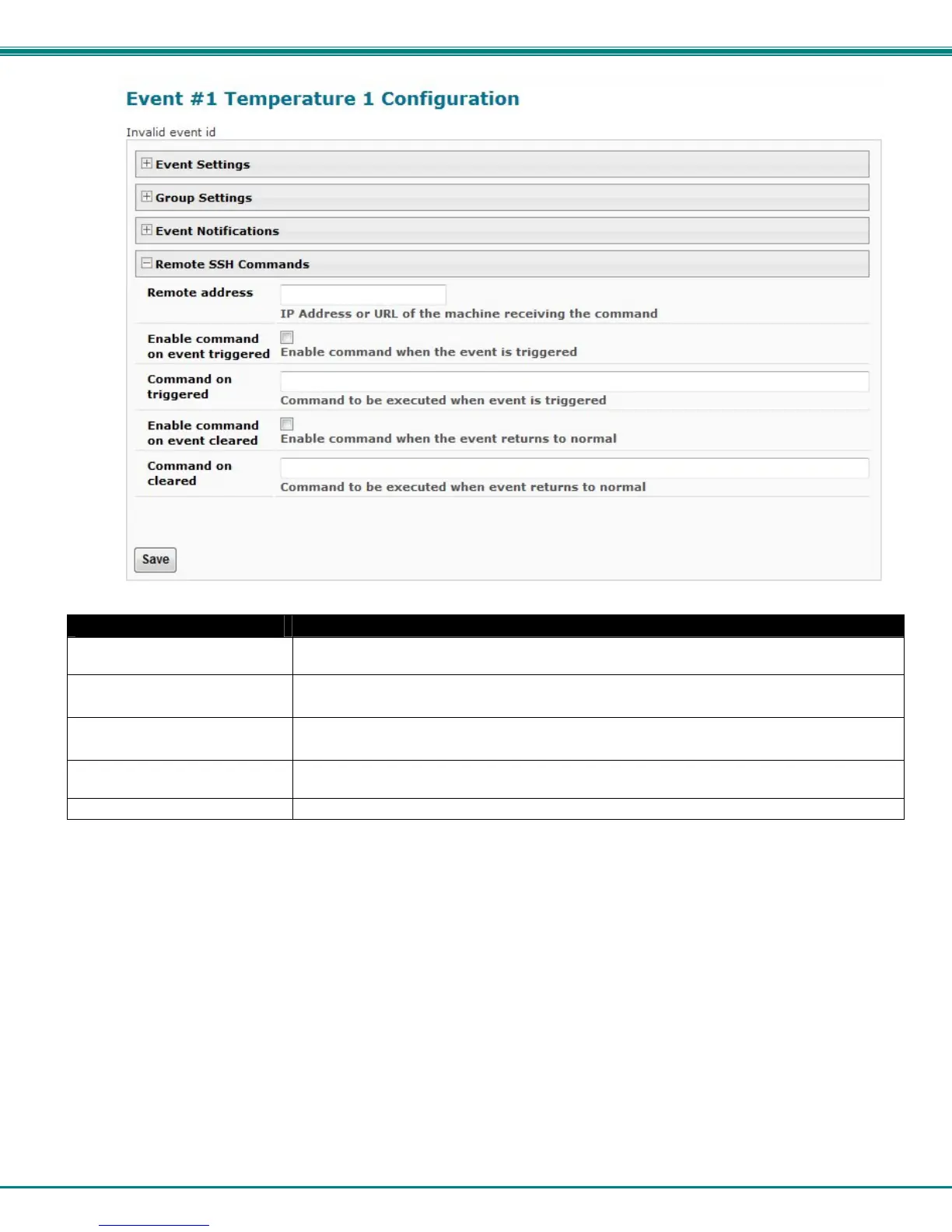 Command on cleared Enter an SSH command to be sent to the remote address when this Event is cleared