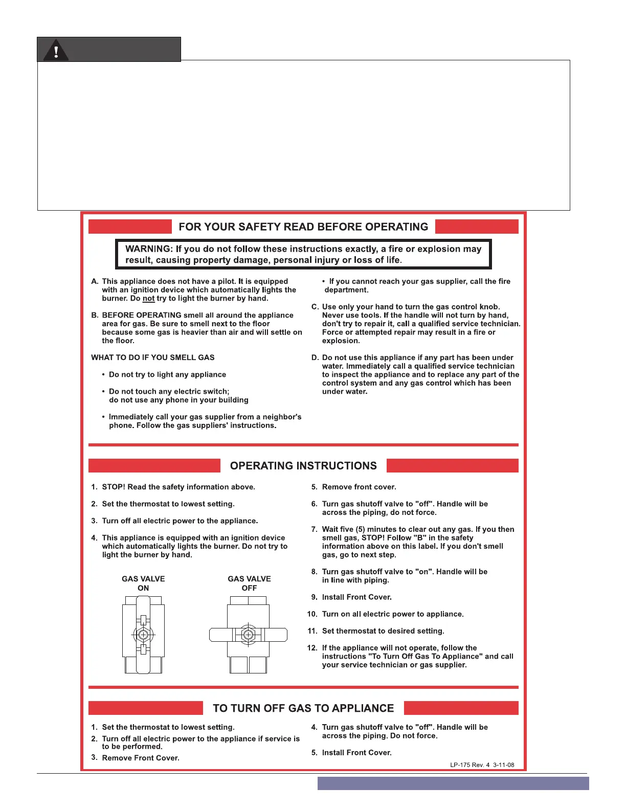 WARNING: If the information in these instructions is not followed exactly, a re or explosion may result causing property damage, personal