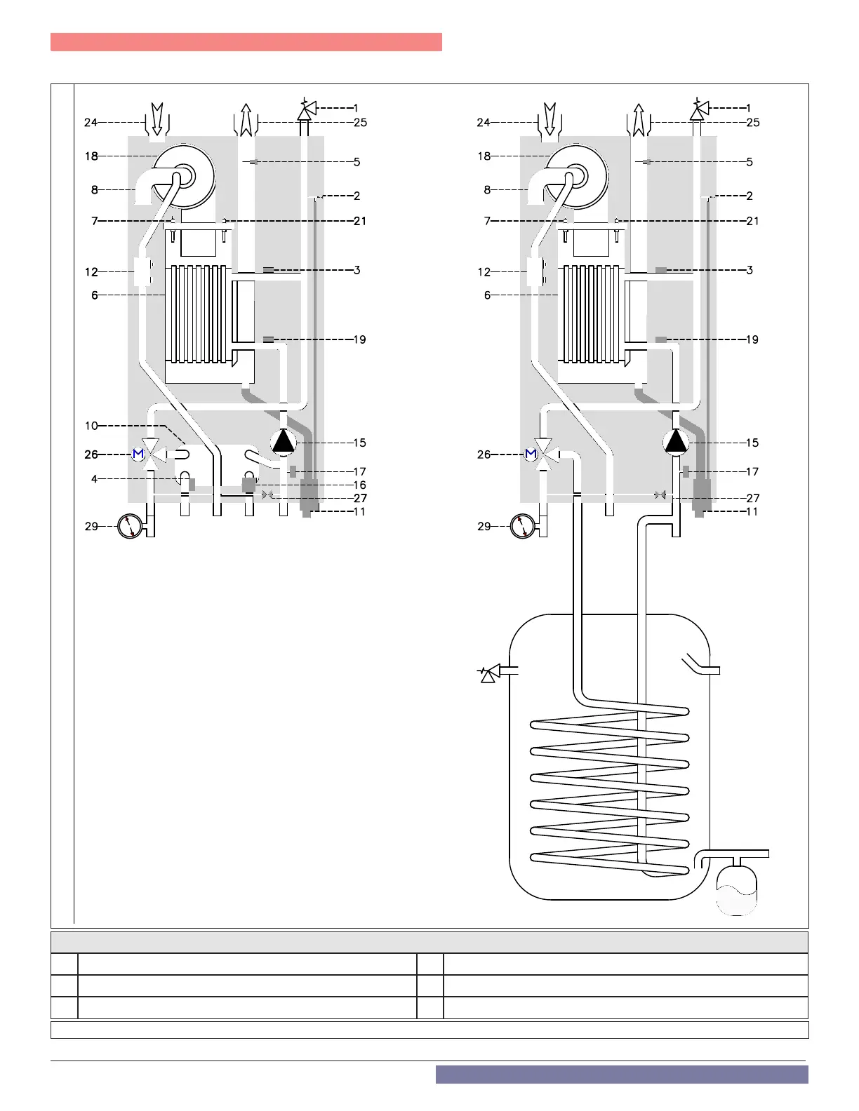 B DHW Hot Outlet E Central Heating (and Indirect Water Heater) Return
