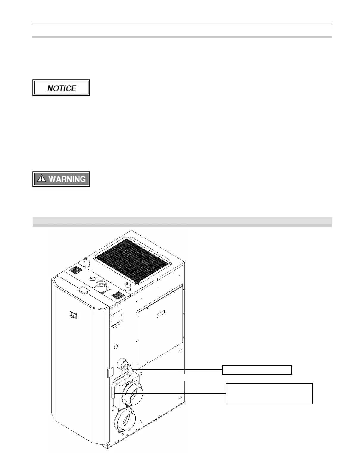 DO NOT install condensate lines outside. A frozen or blocked drain will cause the condensate to fill the