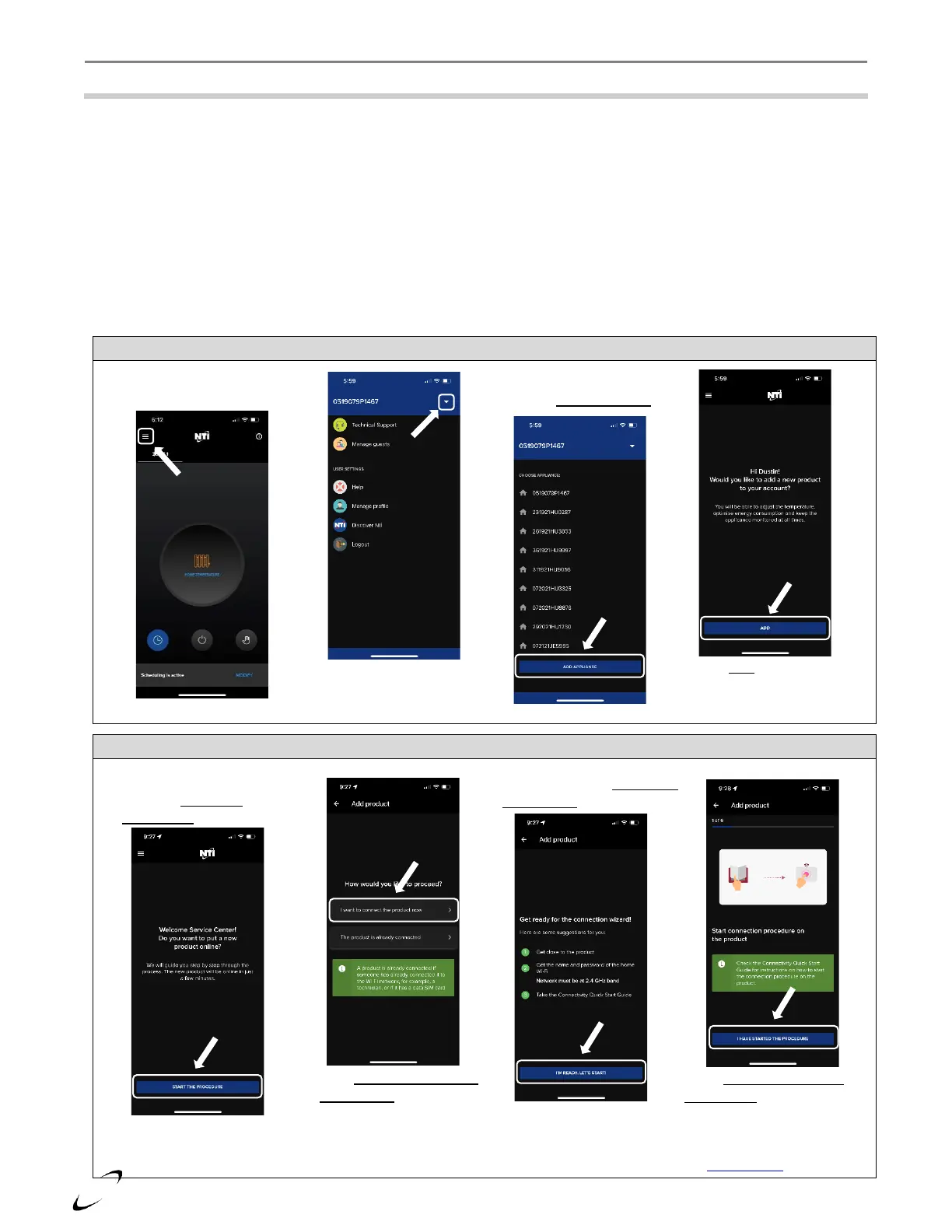 Figure 17-1 “NTI net” App – Navigating to the “Add Product Page” (Homeowner account only)