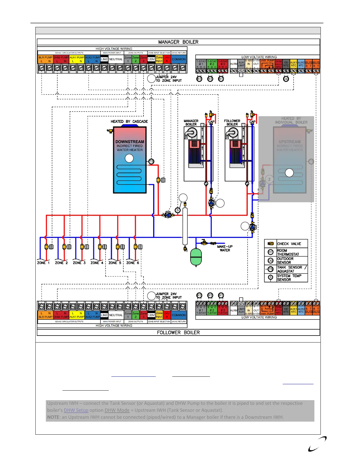 NOTE: an Upstream IWH cannot be connected (piped/wired) to a Manager boiler if there is a Downstream IWH.