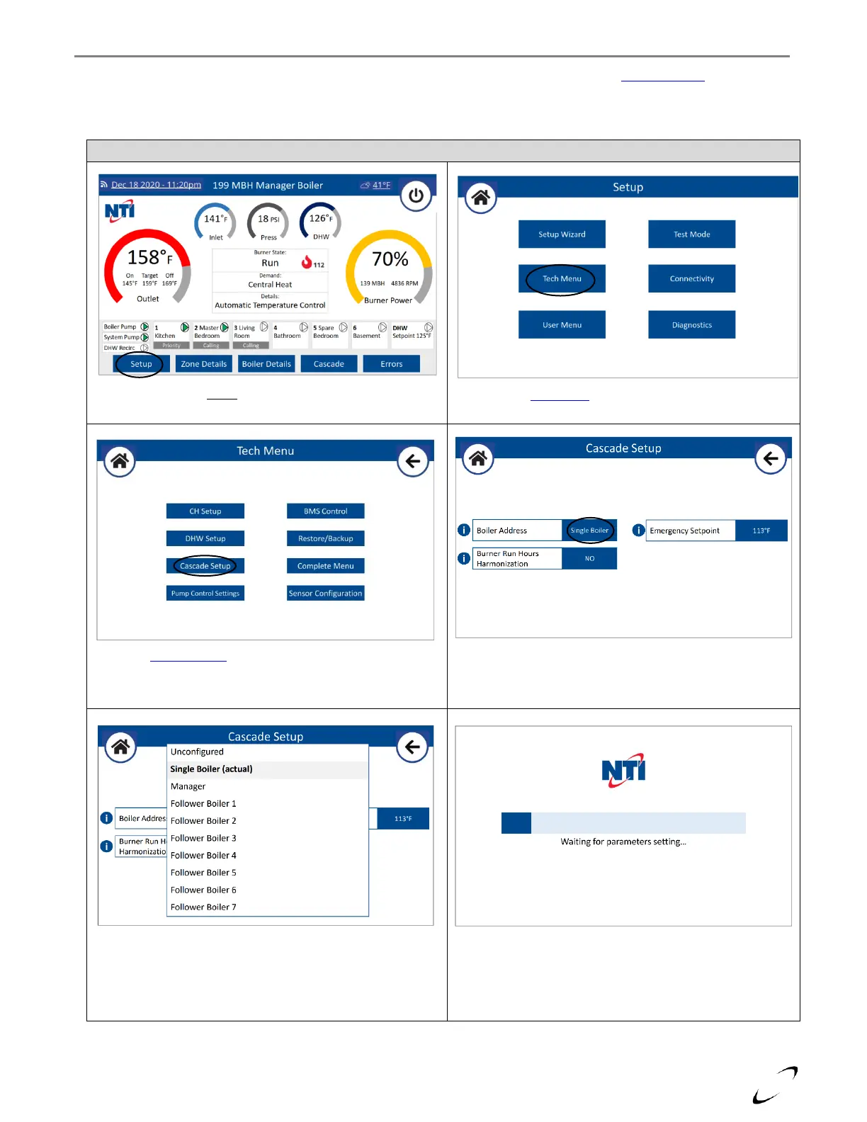 3. Set Boiler Address – turn the power on to each boiler and set the Boiler Address from the Cascade Setup menu. The