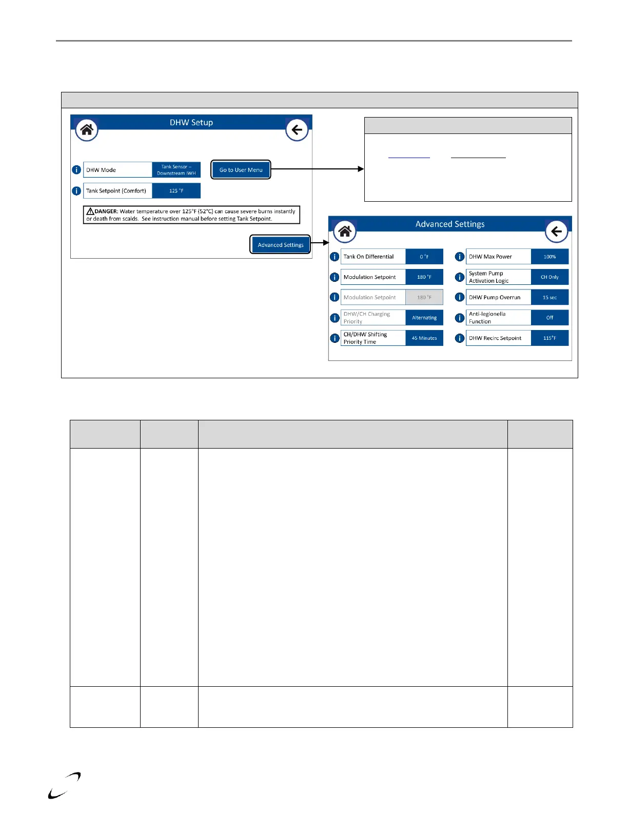 Takes you directly to the user DHW settings menu
