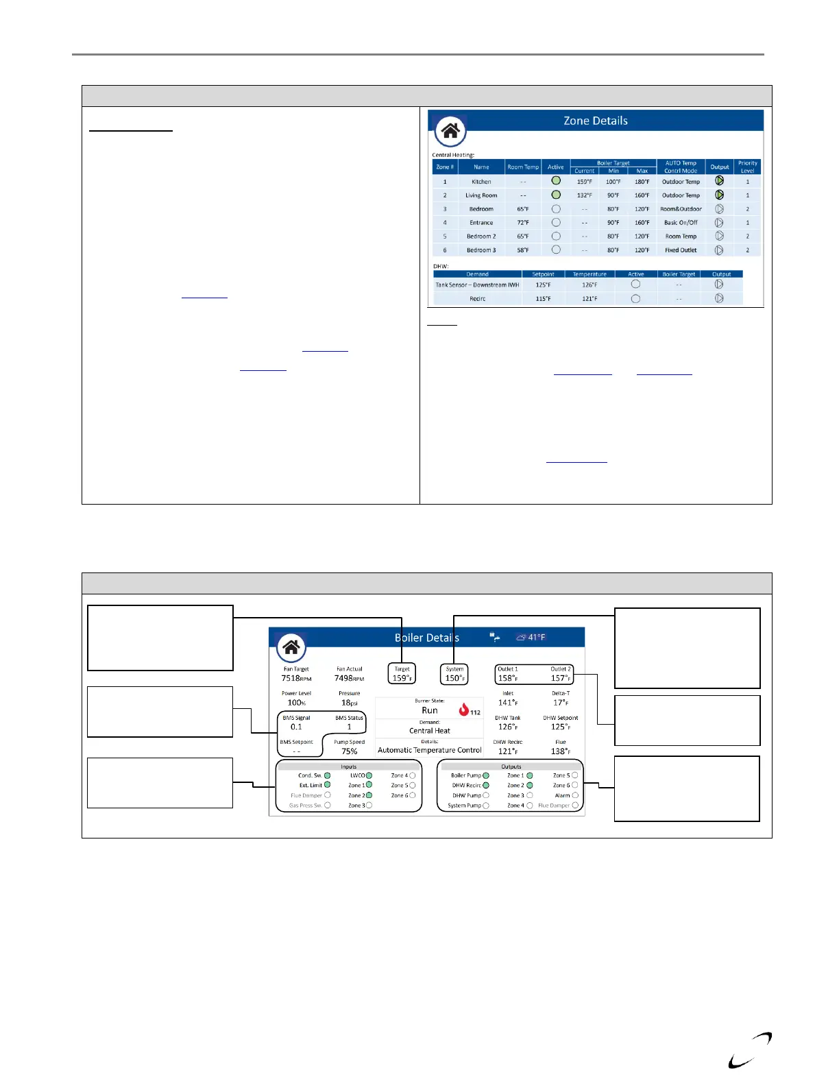 Lists the details and status of the DHW Demands, IWH (Tank Sensor