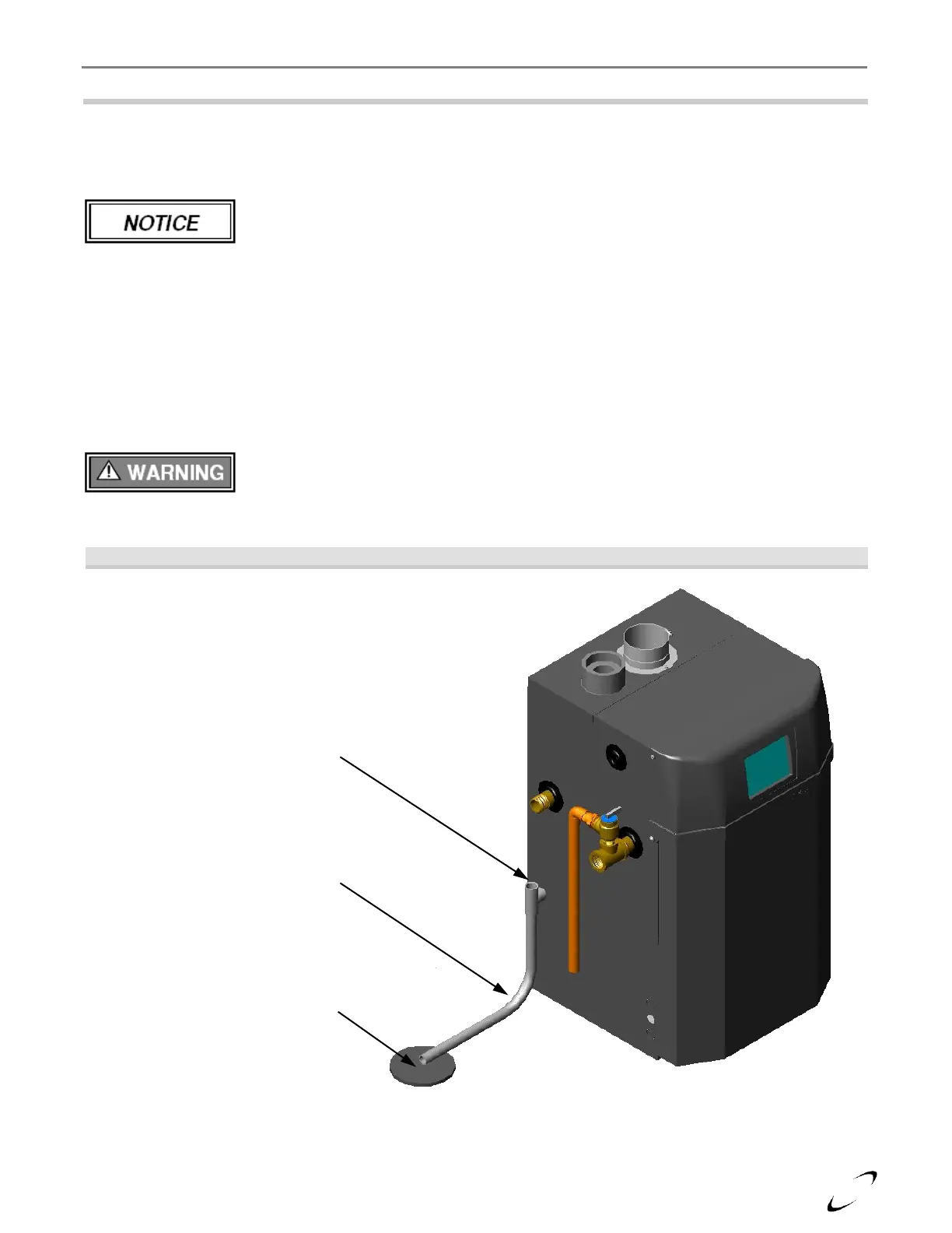 piping must slope back to the boiler a minimum 1/4” per linear foot of vent. Condensate must be drained from