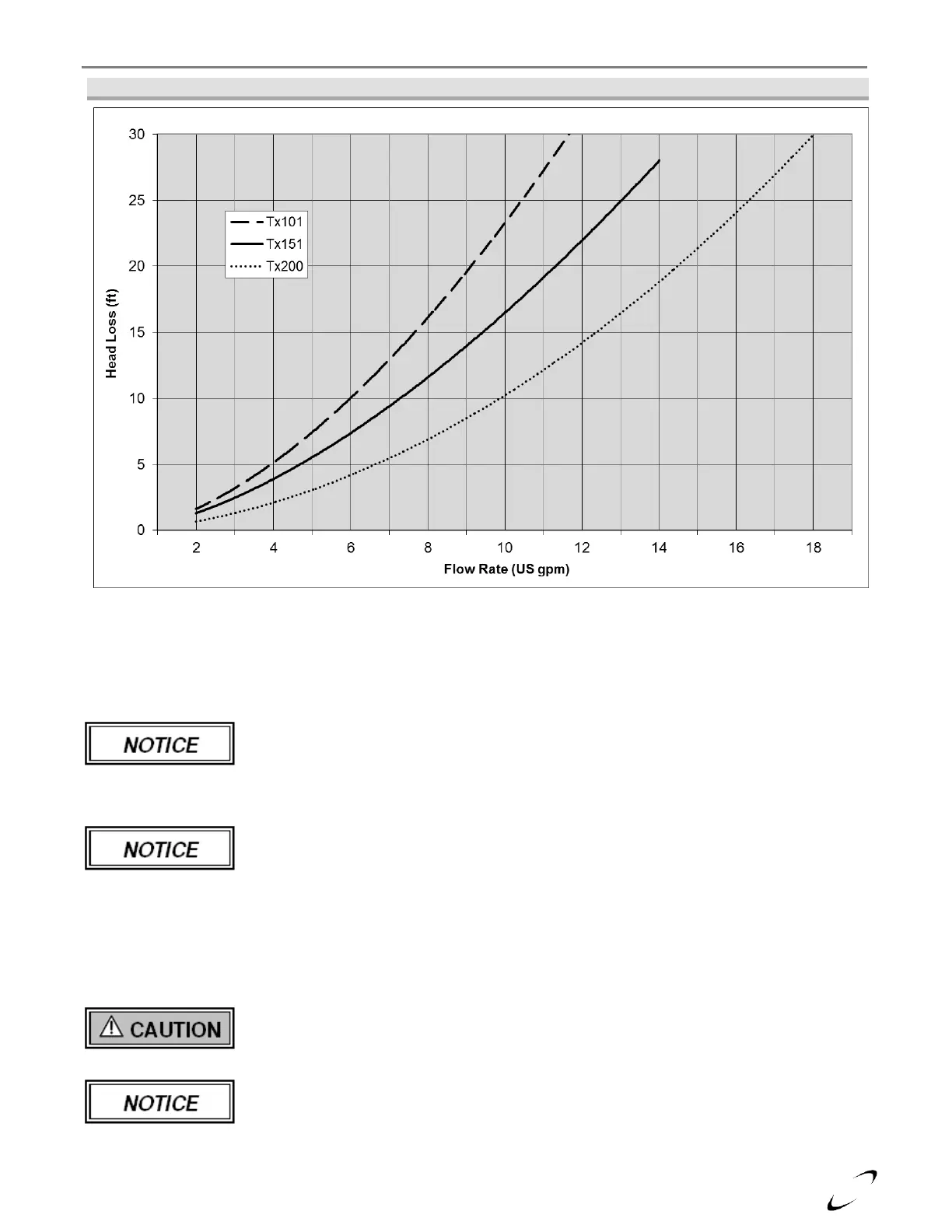 Figure 10-3(b) Tx101, Tx151 & Tx200 Head Loss Curves