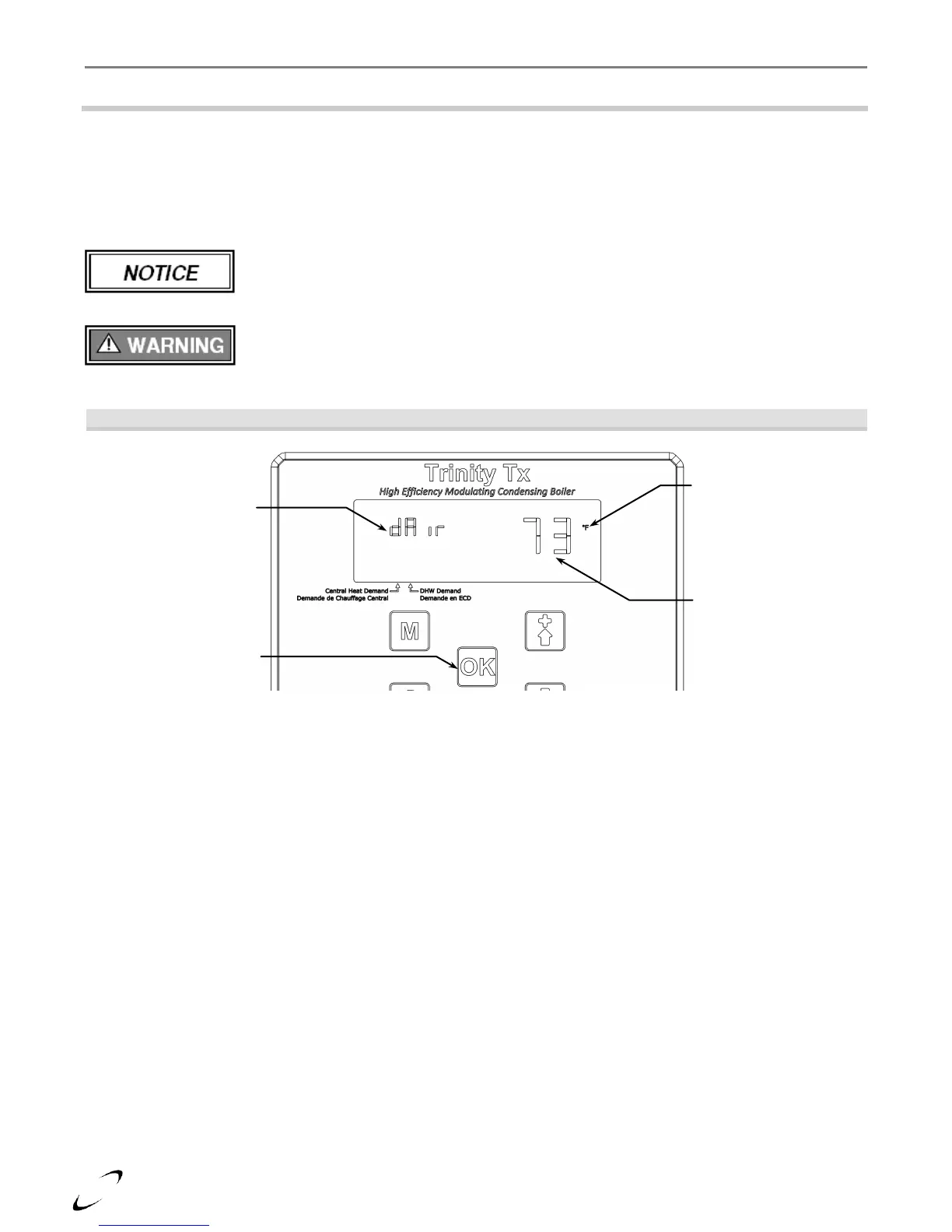 demand (CH or DHW), burner status and outdoor reset function. See Figure 17-2 for more details.