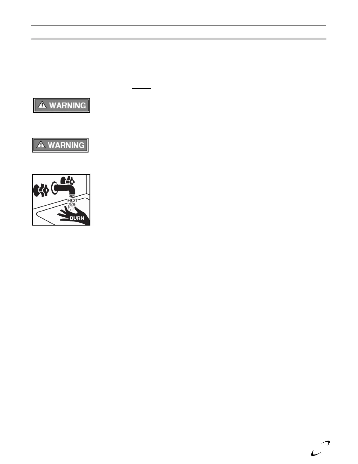 Scald Hazard - Hotter water increases the risk of scald injury. There is a hot water scald
