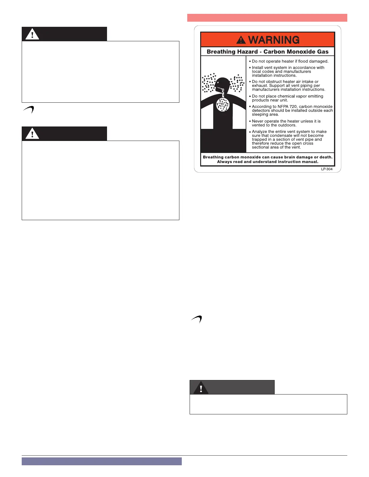 leakage, or deterioration of the piping. Inspect the exhaust vent