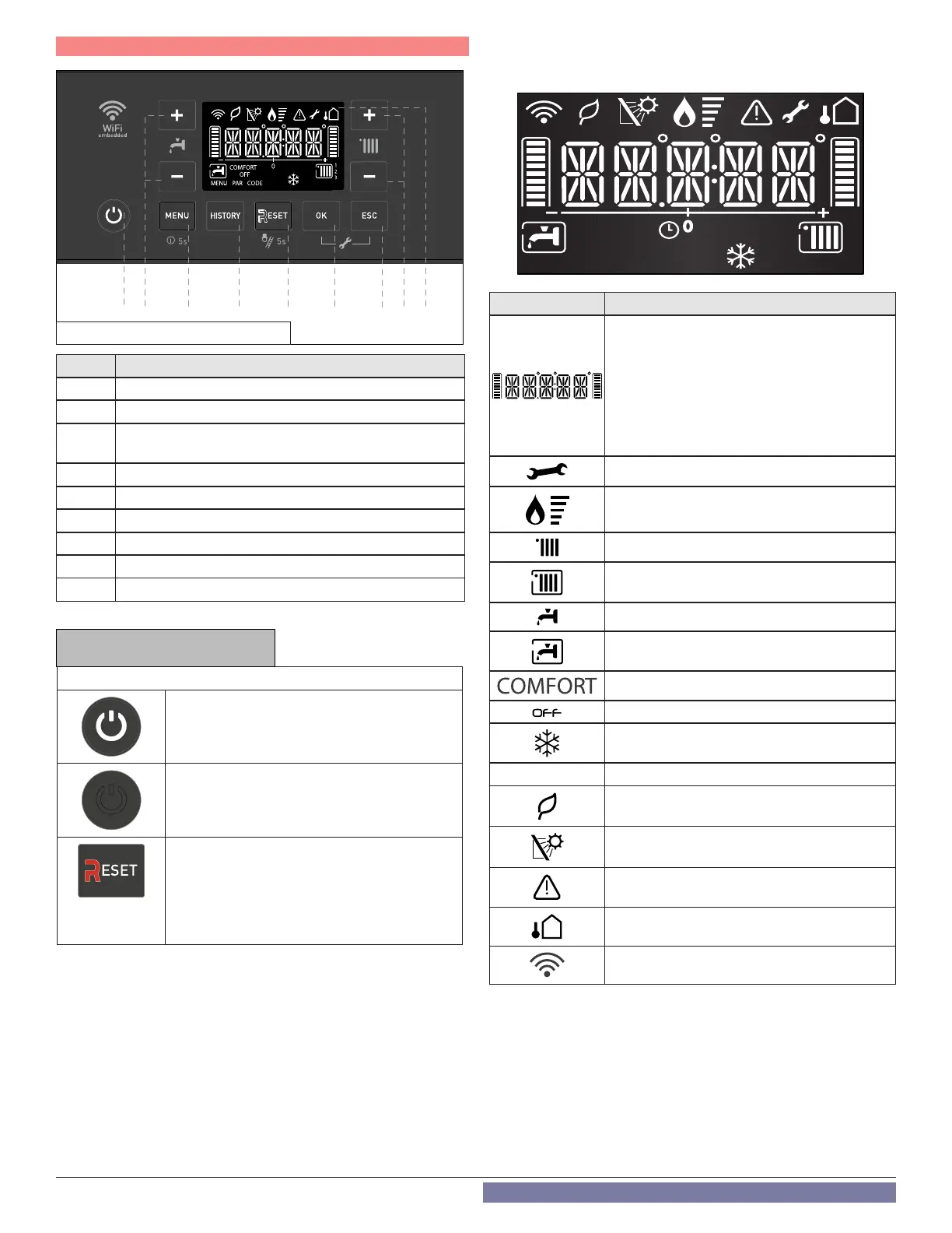 The button lights (white) when the boiler is