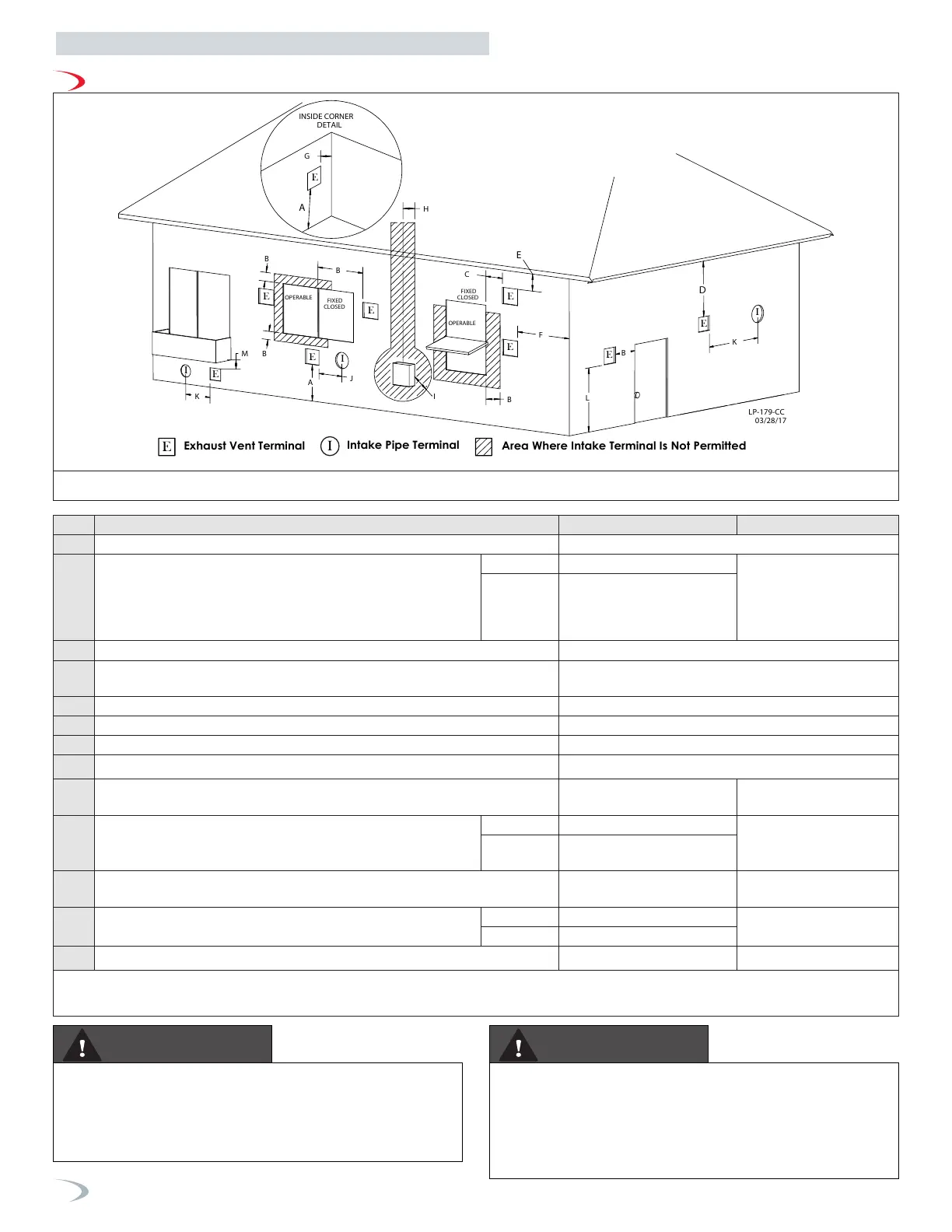 Table 13 - Vent Termination Clearances - *NOTE: For clearances not specified in ANSI Z223.1 / NFPA 54 for US and CAN/CSA B149.1