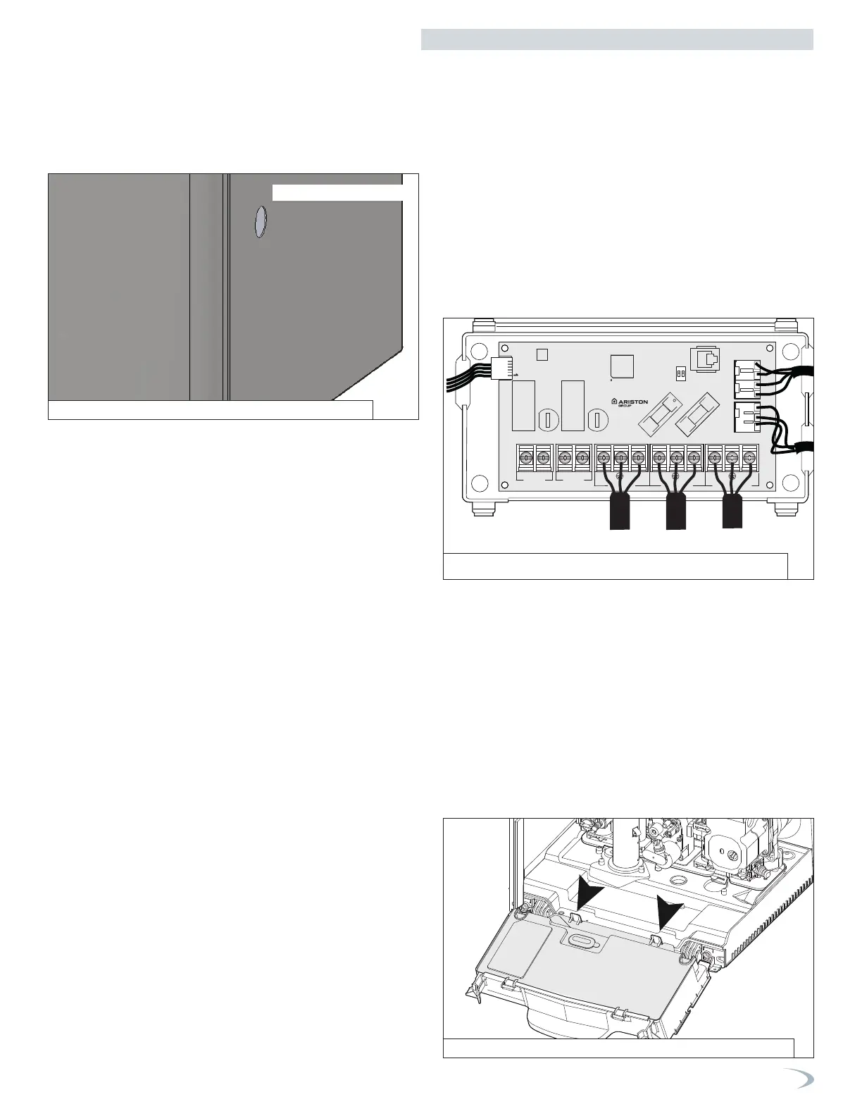 5. Insert the field wiring through the hole in the side panel; use an