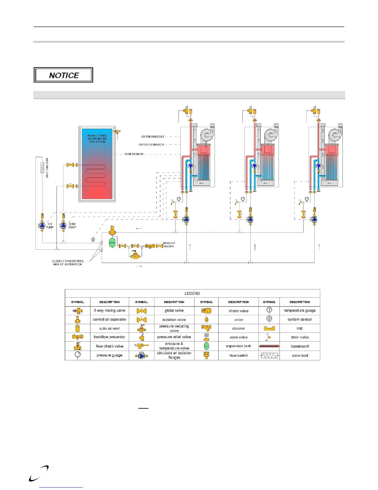 Plumbing – install the boilers in parallel in a primary/secondary plumbing configuration as illustrated in Figure
