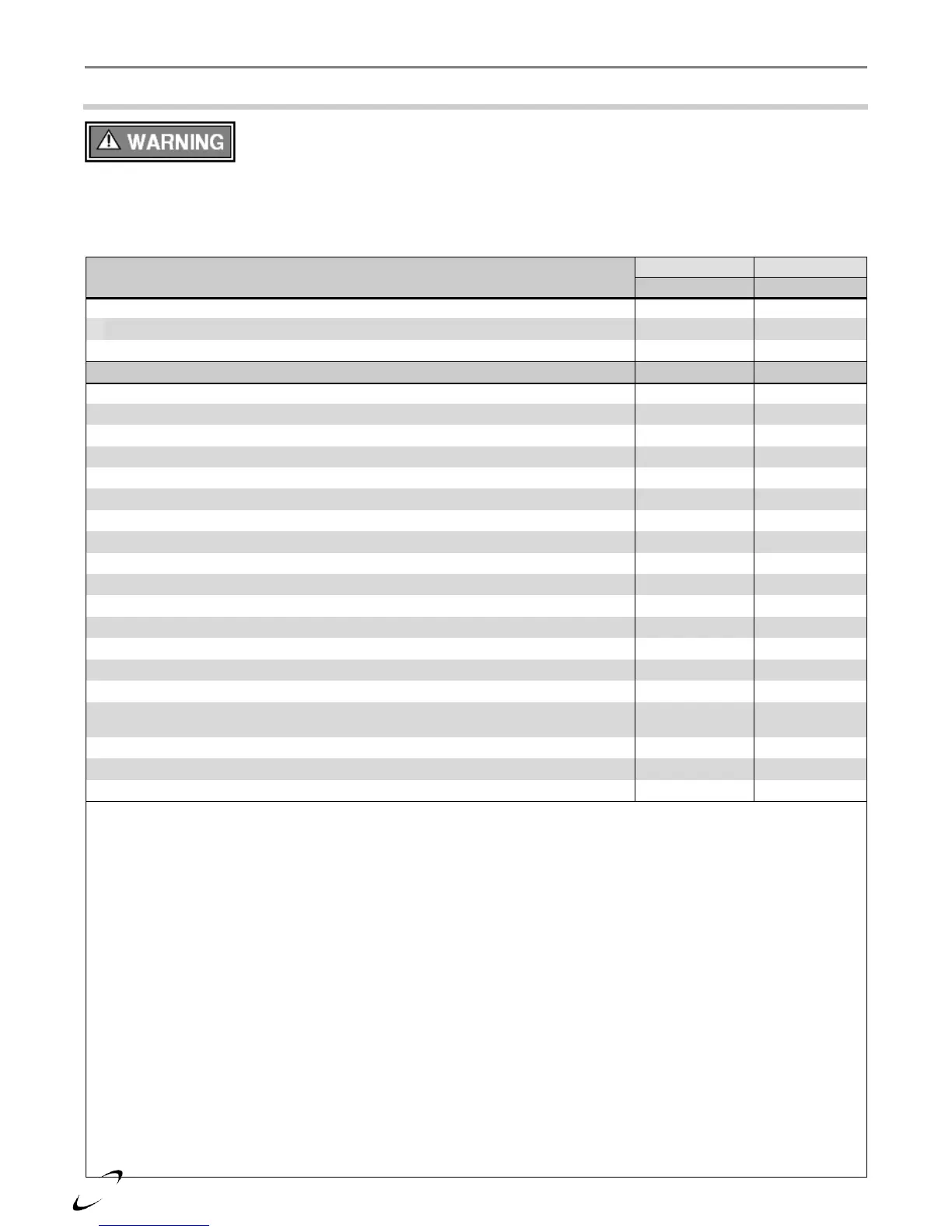 The quick reference table below is to be read in conjunction with the numbered notes as