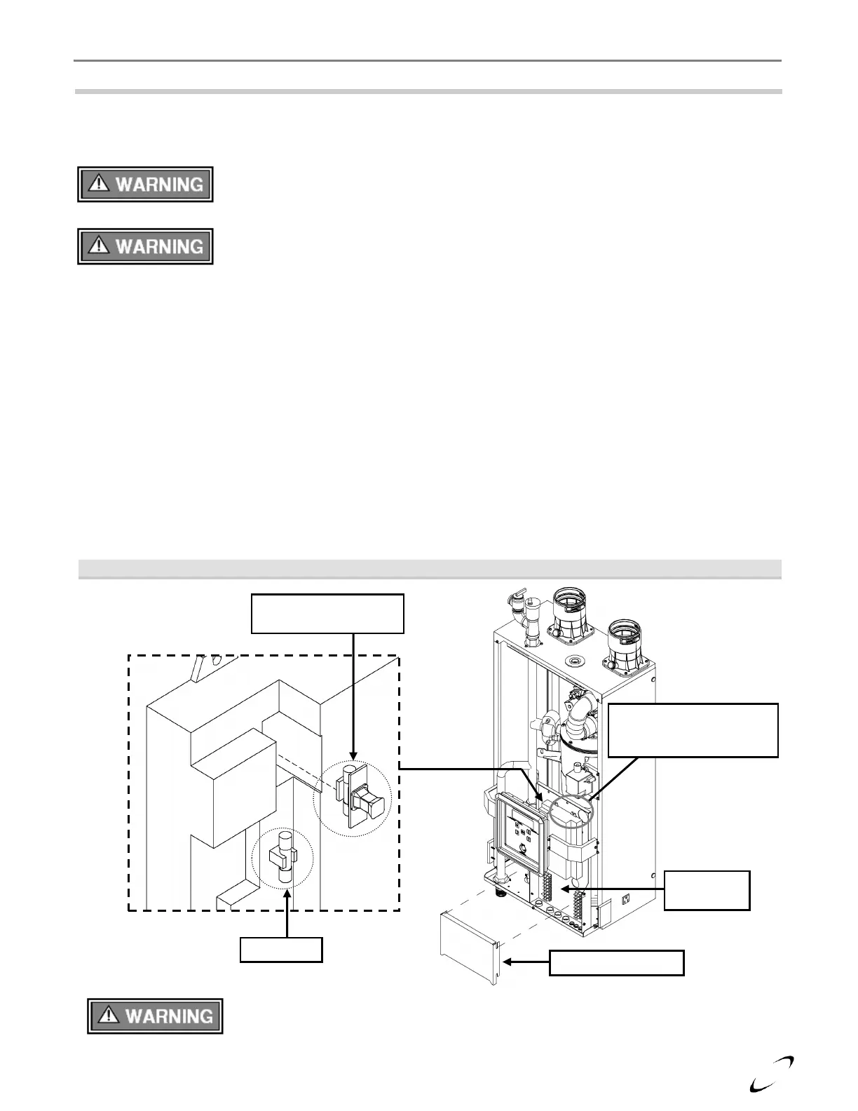 accessed by removing the front door of the boiler, followed by the removal of the control panel cover; see Figure