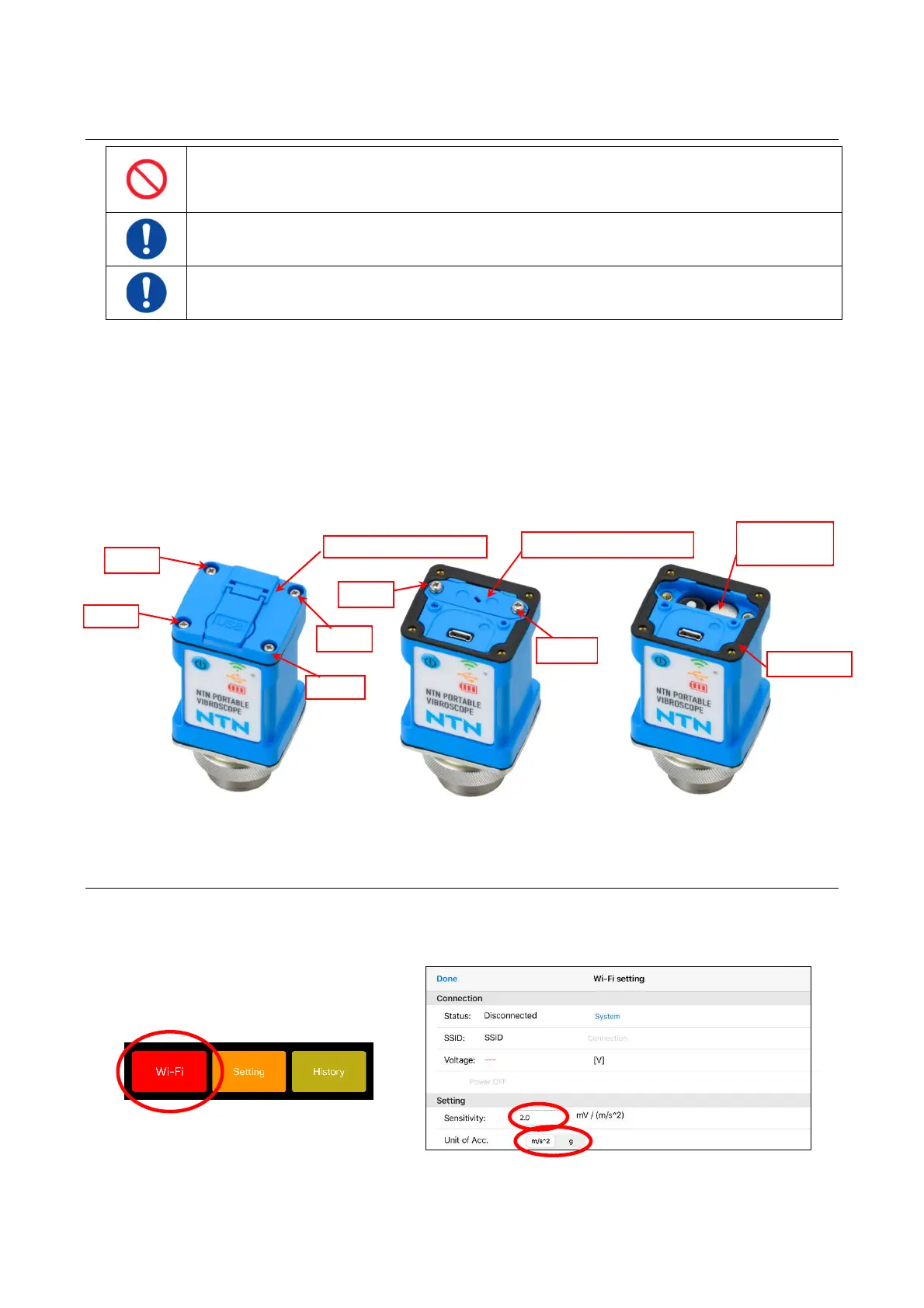 This device needs to be used after inputting sensitivity described on inspection report from “Wi-Fi”