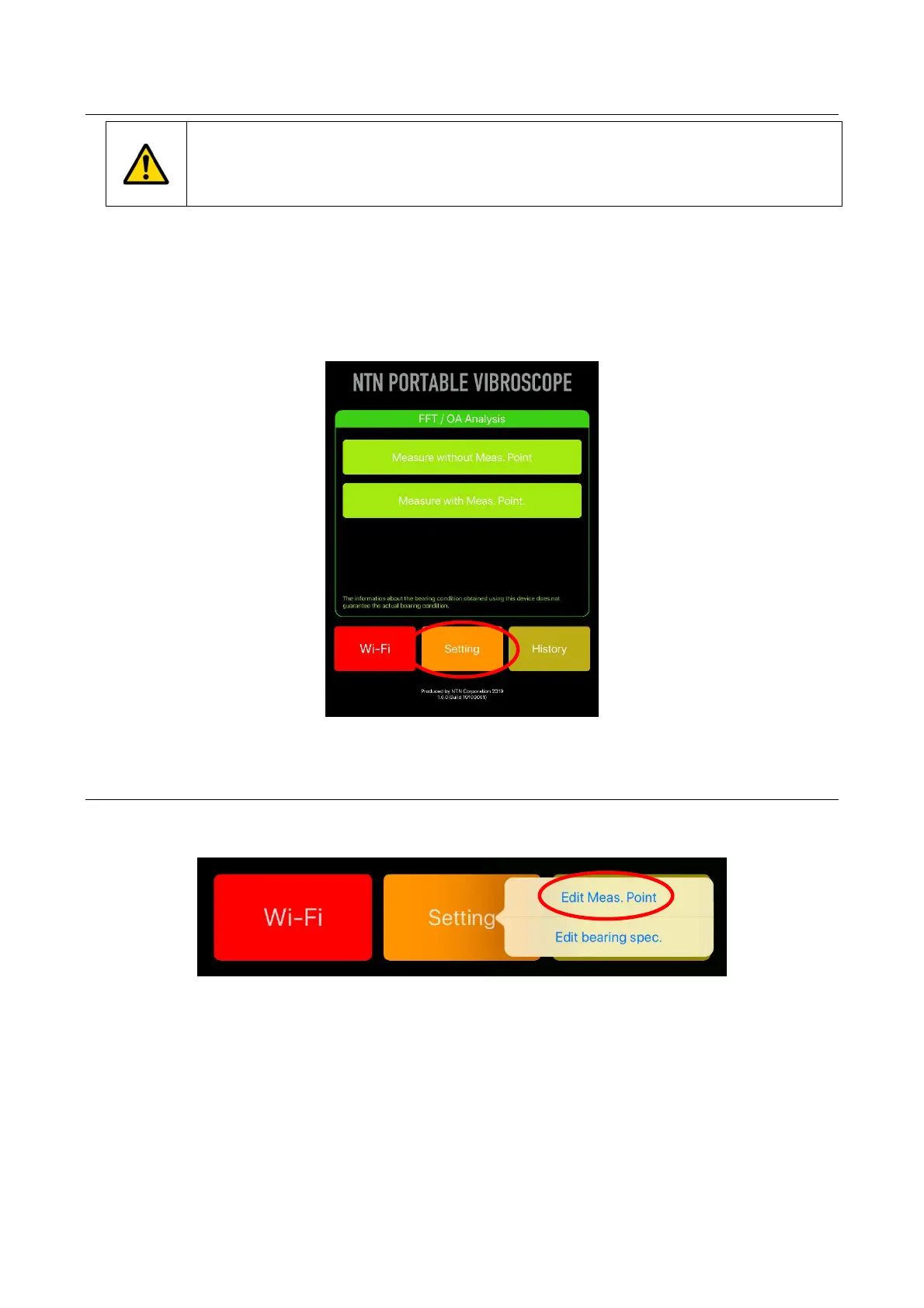 When tap “setting” button on the home screen, the menus of “Edit Meas. Point” and “Edit bearing