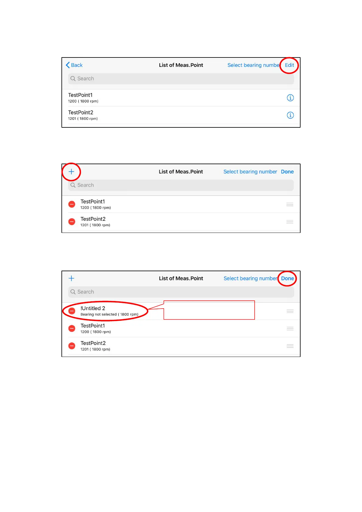 Tap "Edit" button on the screen of “List of Meas. Point”.