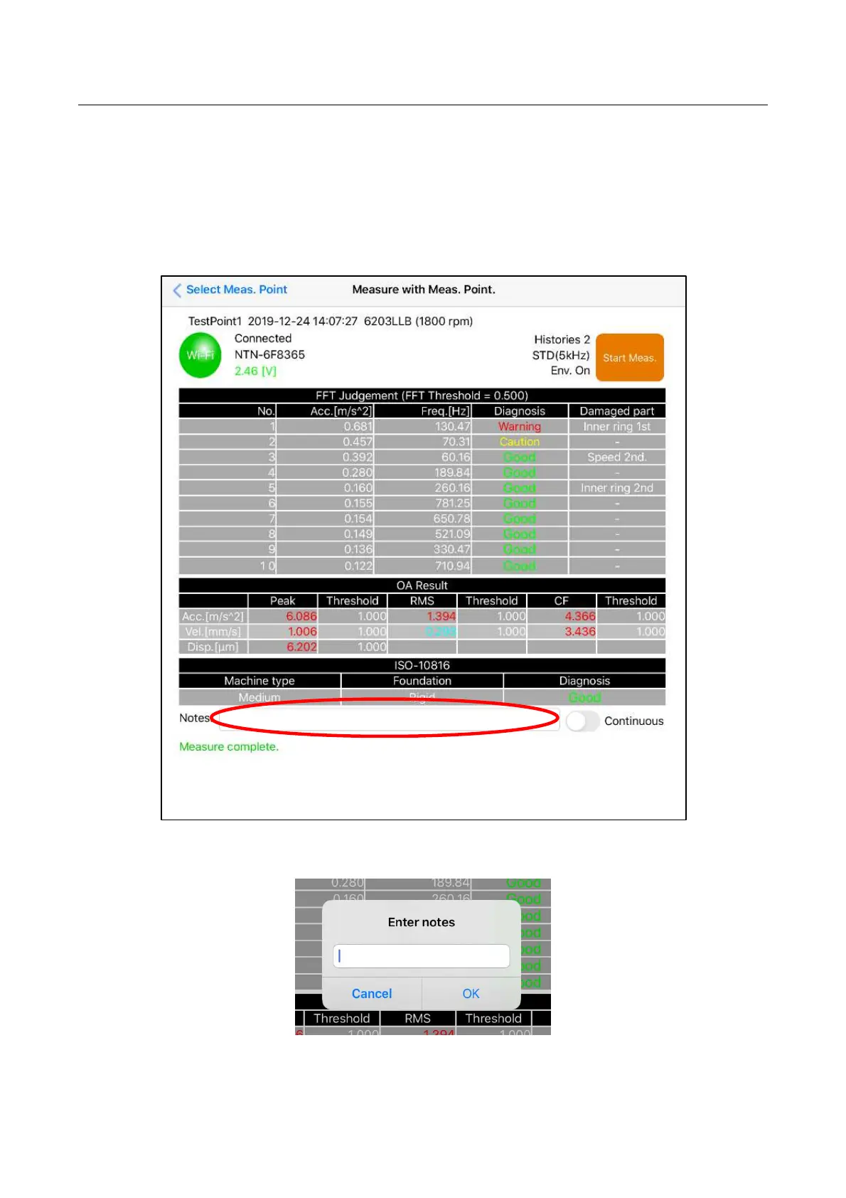 4.9 Notes input function on measured data screen
