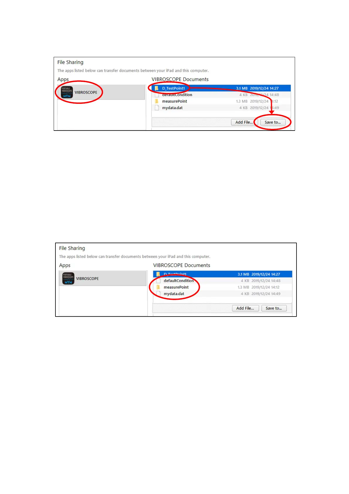 (5) When selecting "NTN PORTABLE VIBROSCOPE" from the application on the displayed file sharing
