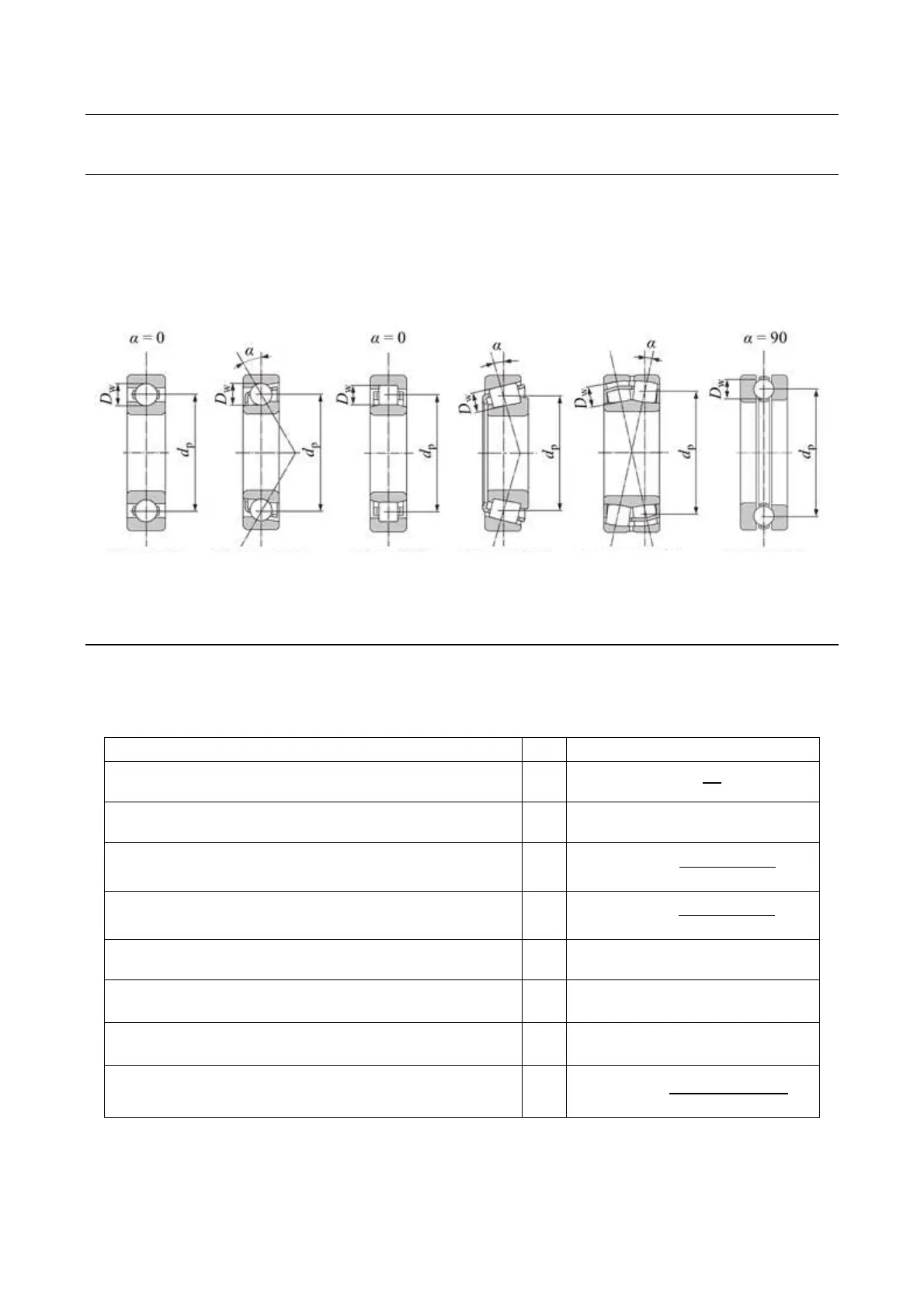 elements, contact angle α (°) of bearing. The positions for the dimension of main bearing parameters are