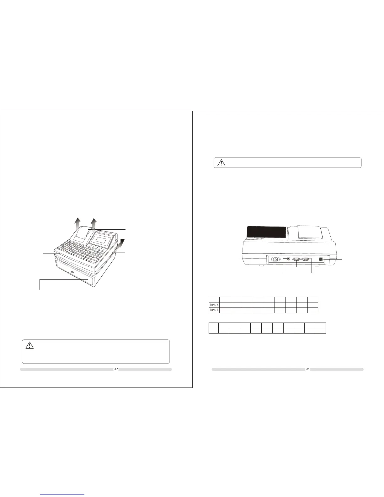 5.Cash drawer port: for connection to and establishing a control line to the cash drawer.
