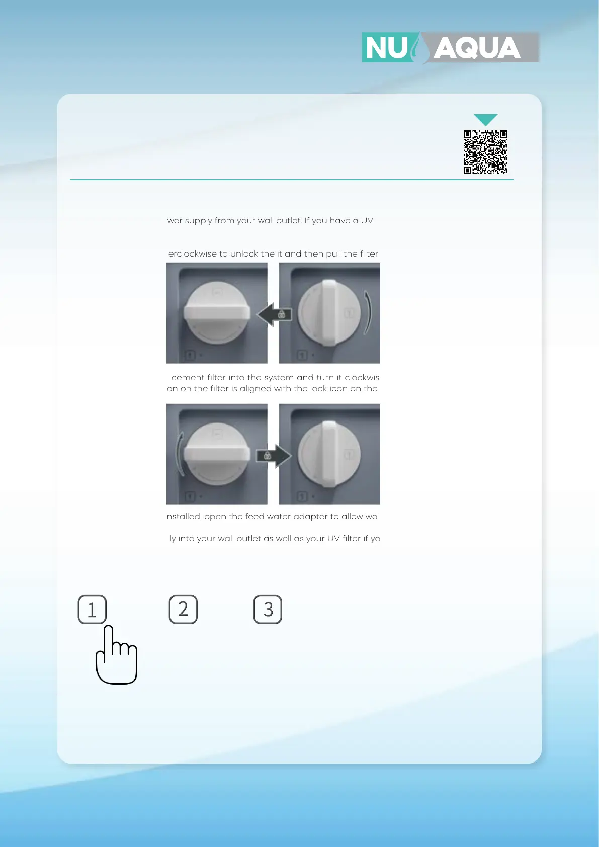 3. Rotate the filter counterclockwise to unlock the it and then pull the filter out from the system.
