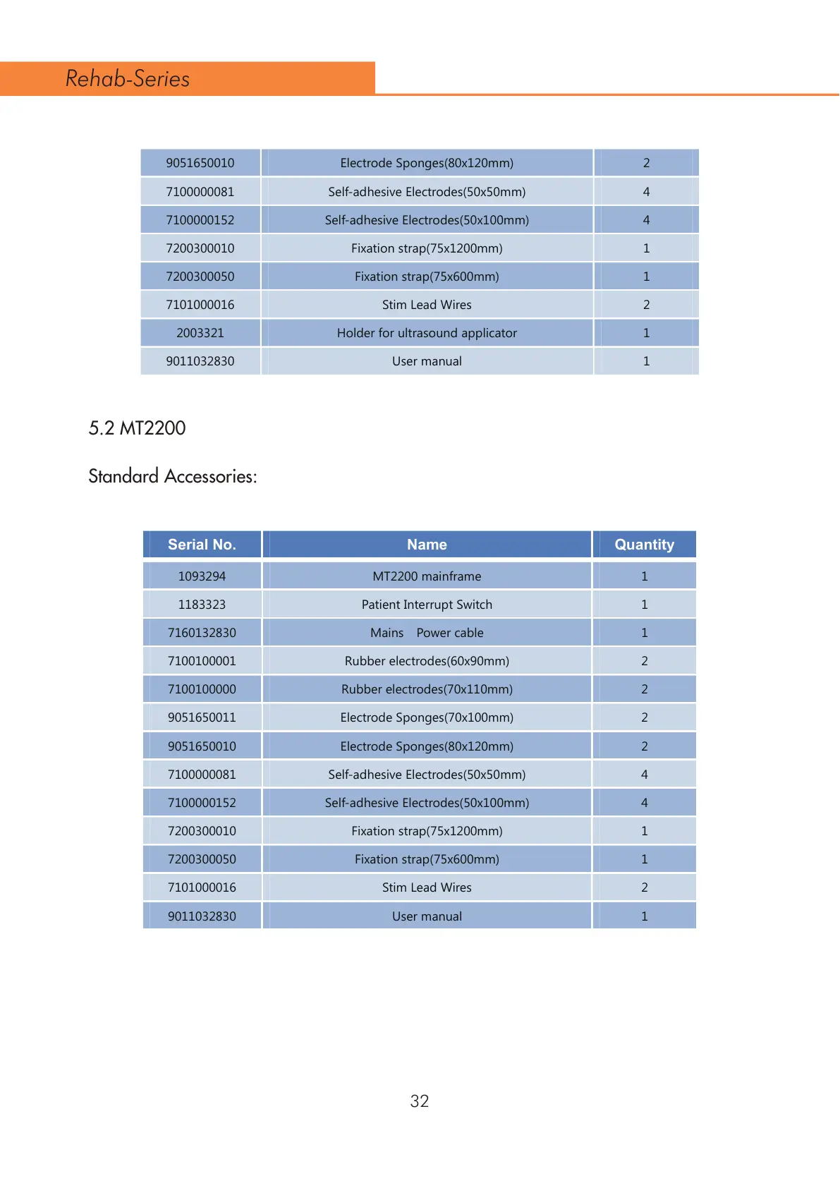 Standard Accessories: