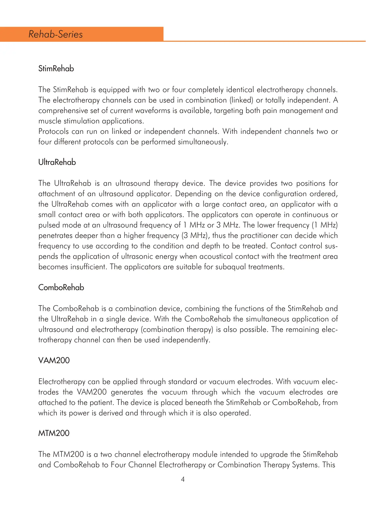 and ComboRehab to Four Channel Electrotherapy or Combination Therapy Systems. This