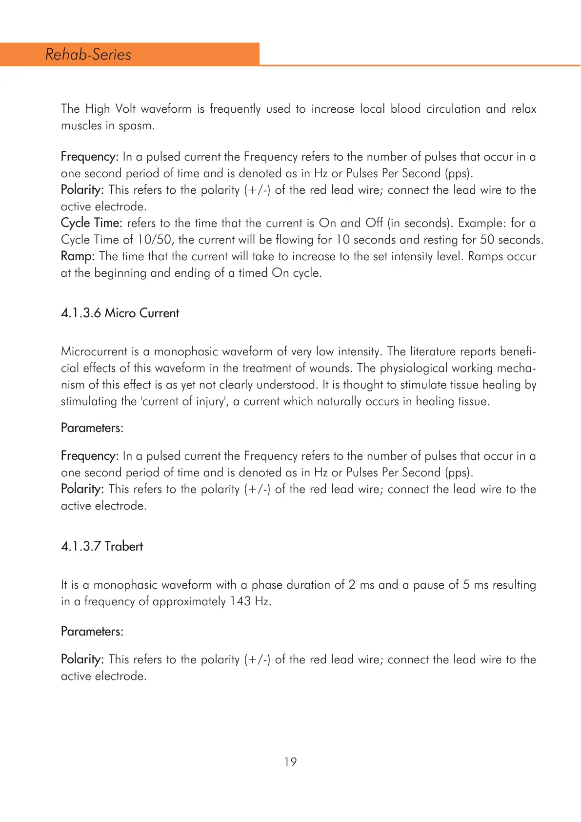 The High Volt waveform is frequently used to increase local blood circulation and relax