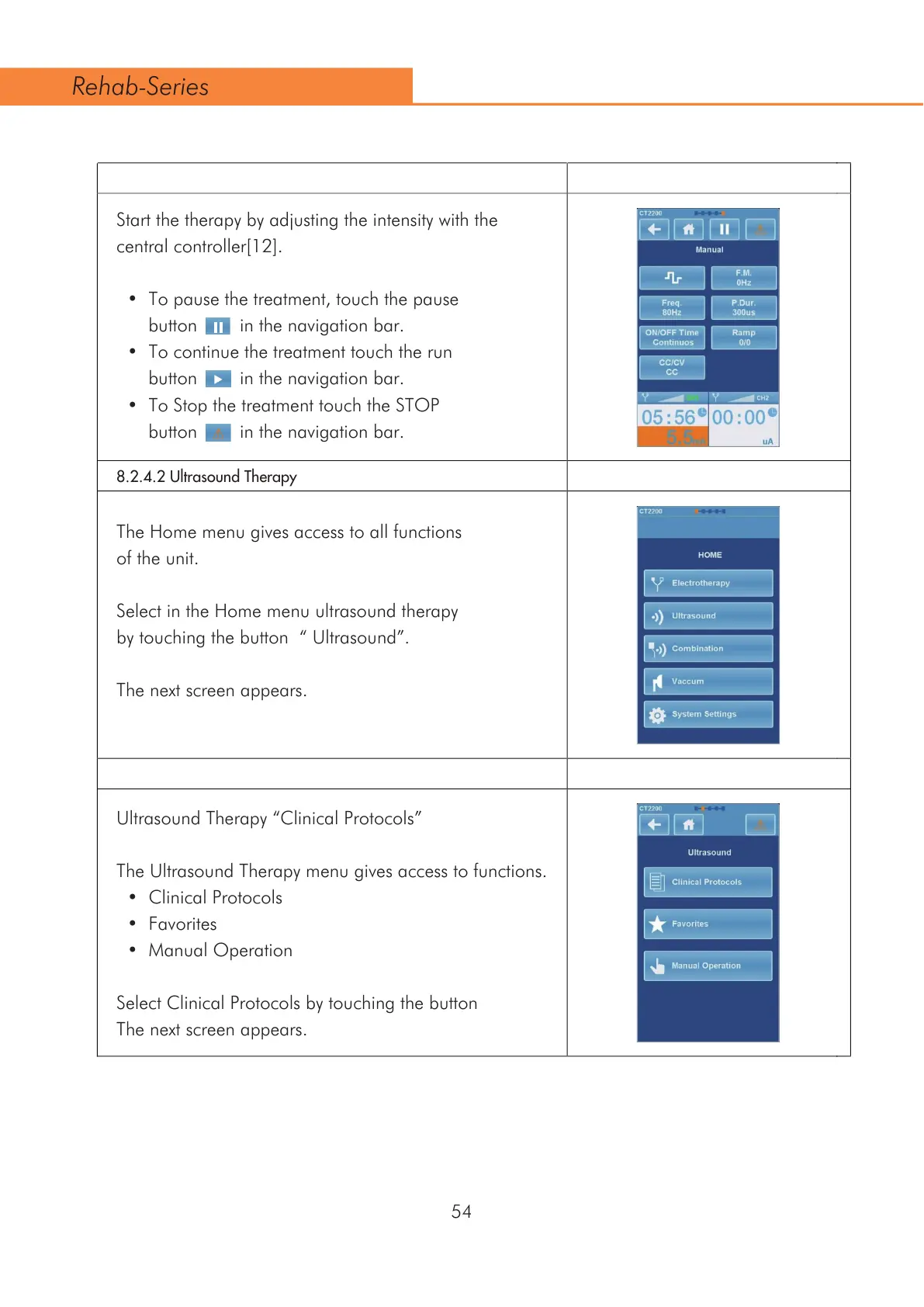 Select in the Home menu ultrasound therapy