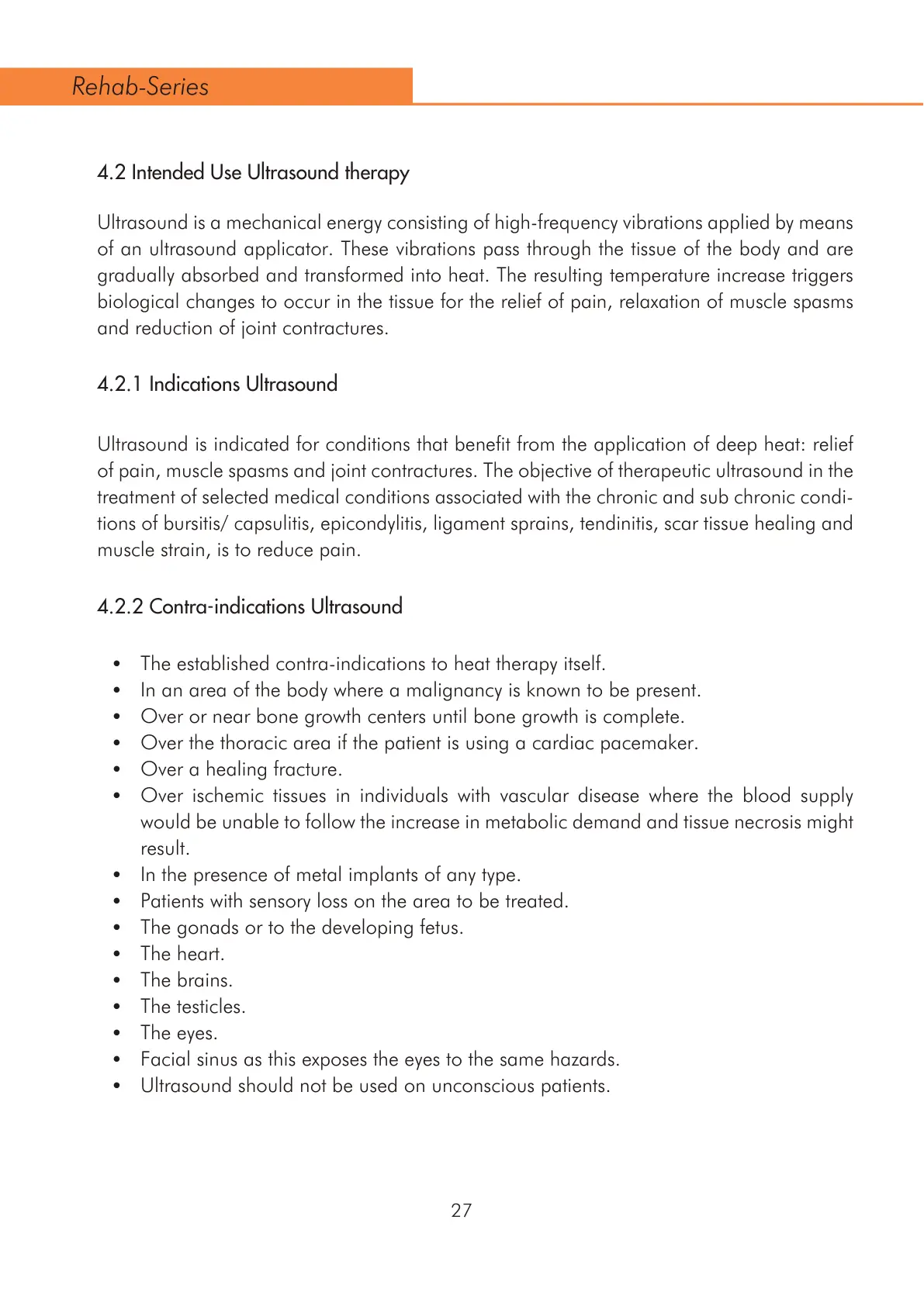 of pain, muscle spasms and joint contractures. The objective of therapeutic ultrasound in the