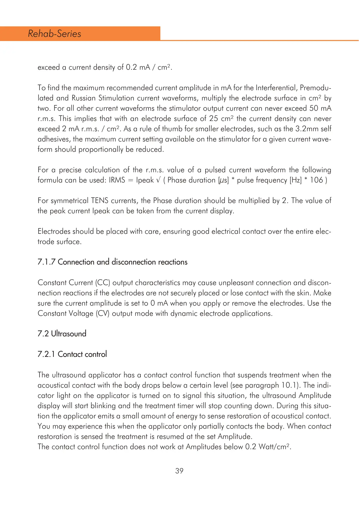 lated and Russian Stimulation current waveforms, multiply the electrode surface in cm² by