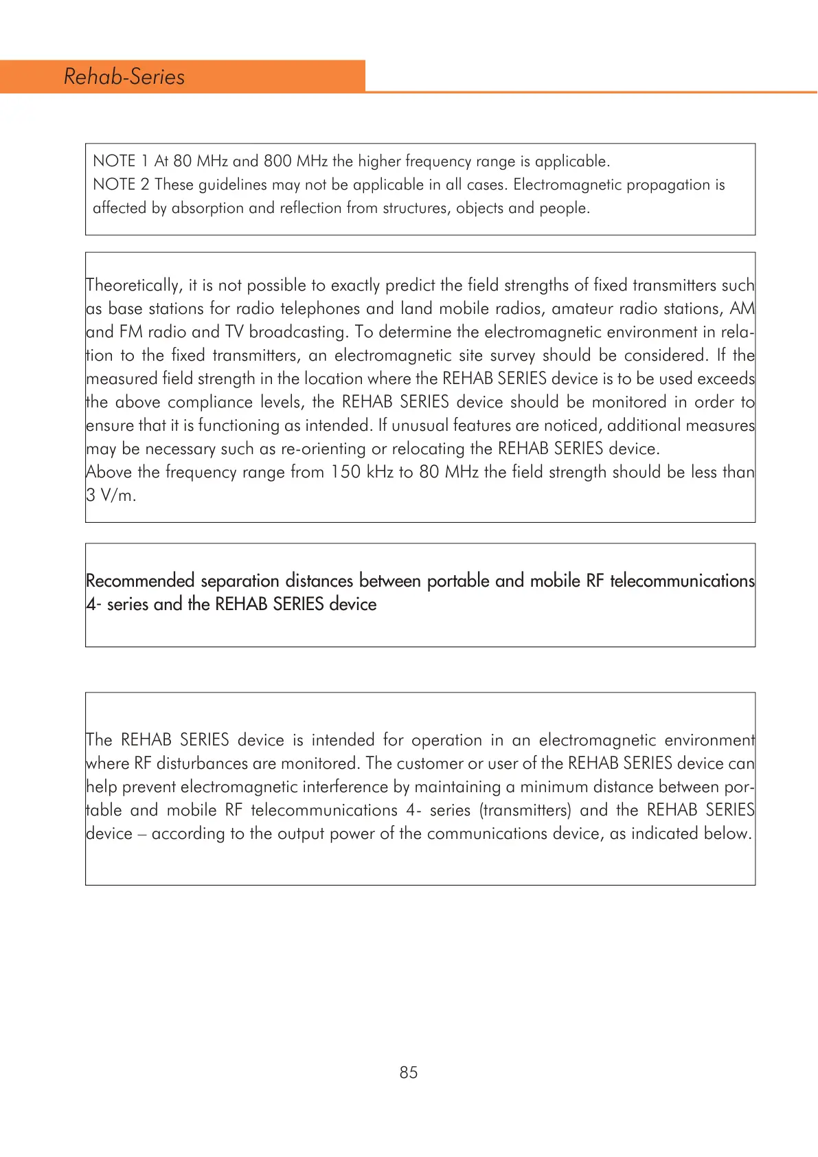 where RF disturbances are monitored. The customer or user of the REHAB SERIES device can