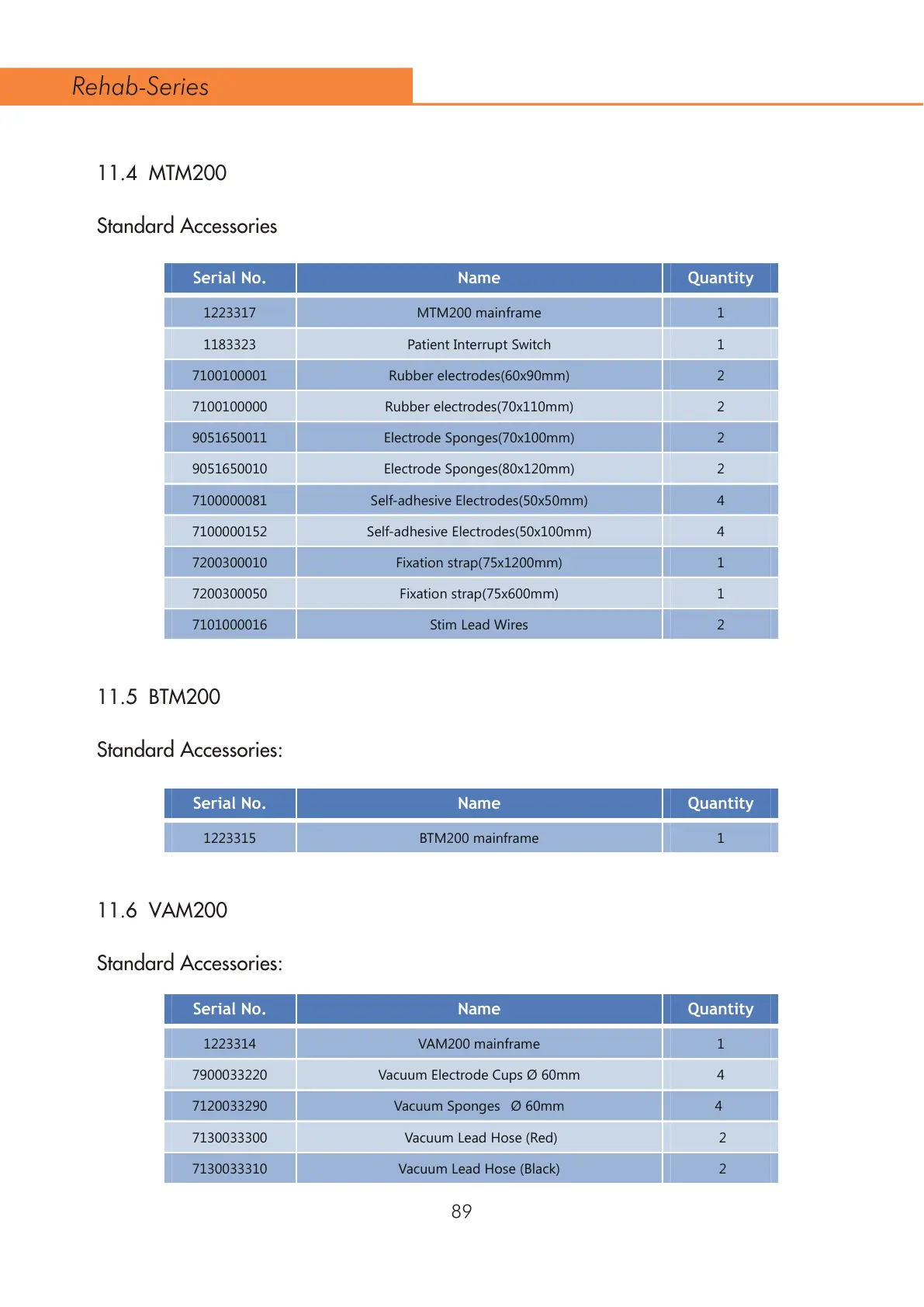 Serial No. Name Quantity