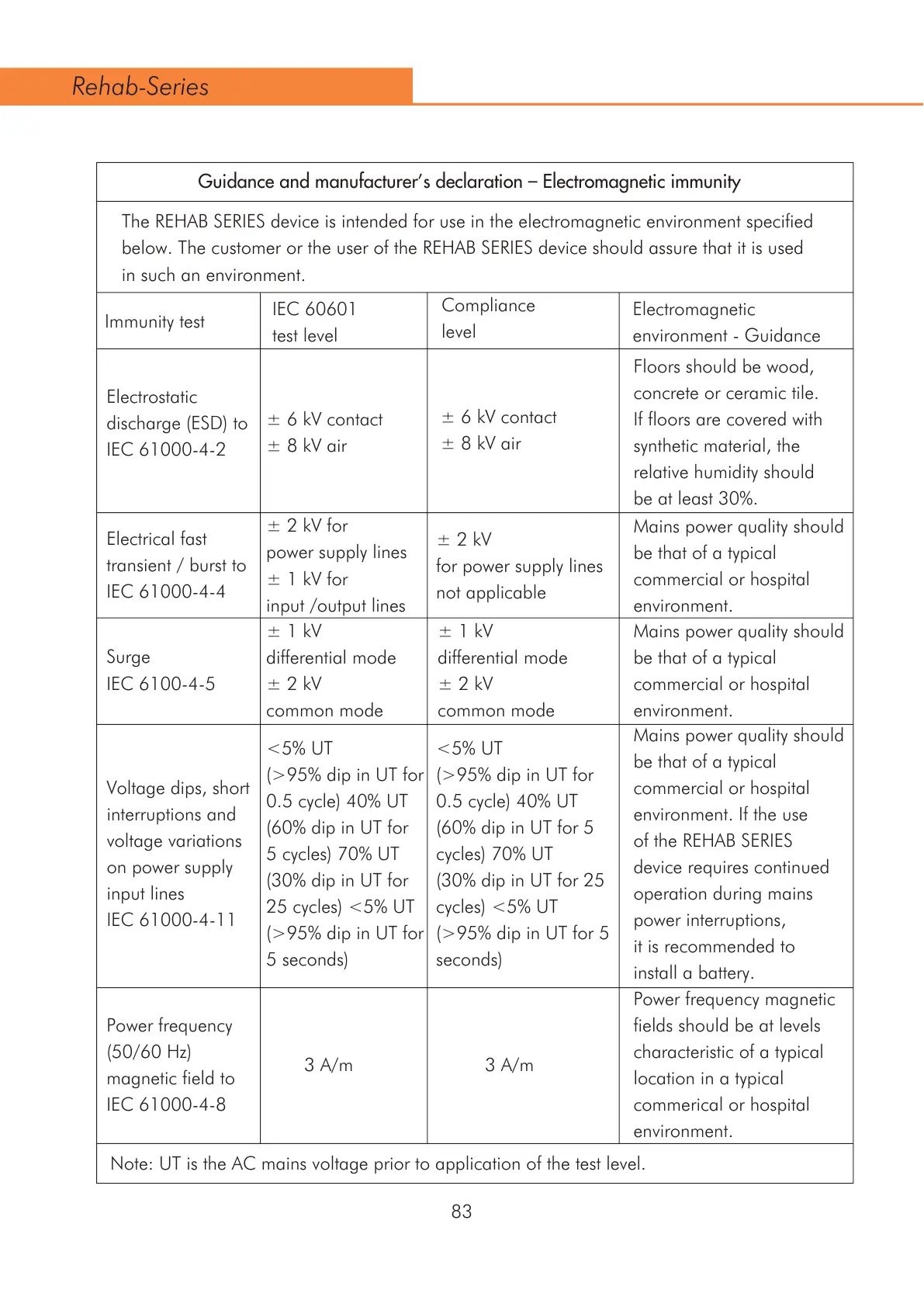 The REHAB SERIES device is intended for use in the electromagnetic environment specified