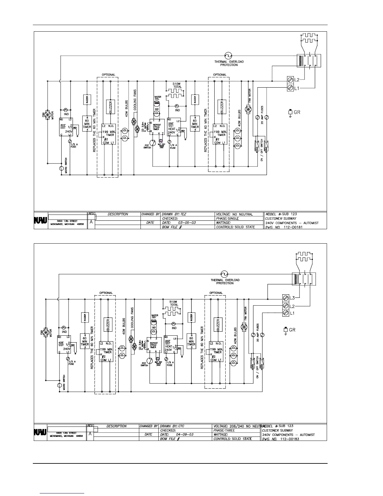 ELECTRICAL SCHEMATICS SUB–123 OWNER'S MANUAL