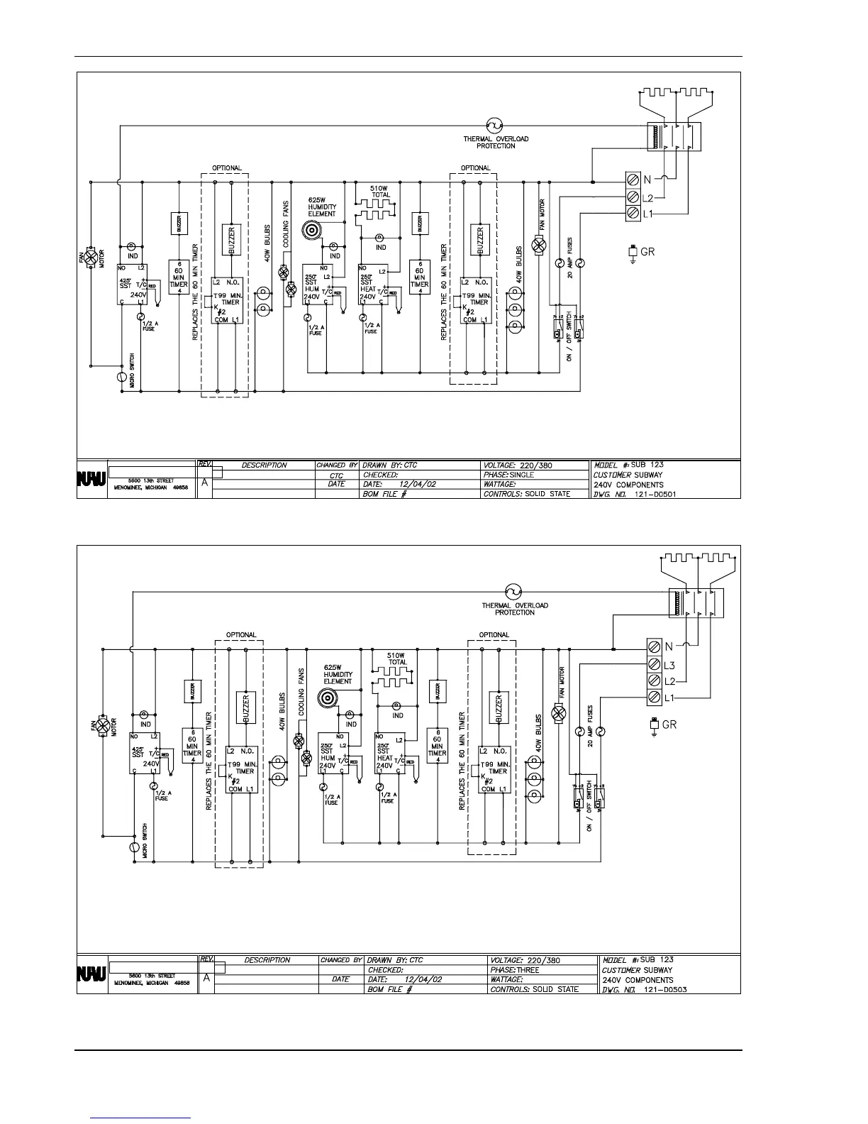 ELECTRICAL SCHEMATICS SUB–123 OWNER'S MANUAL