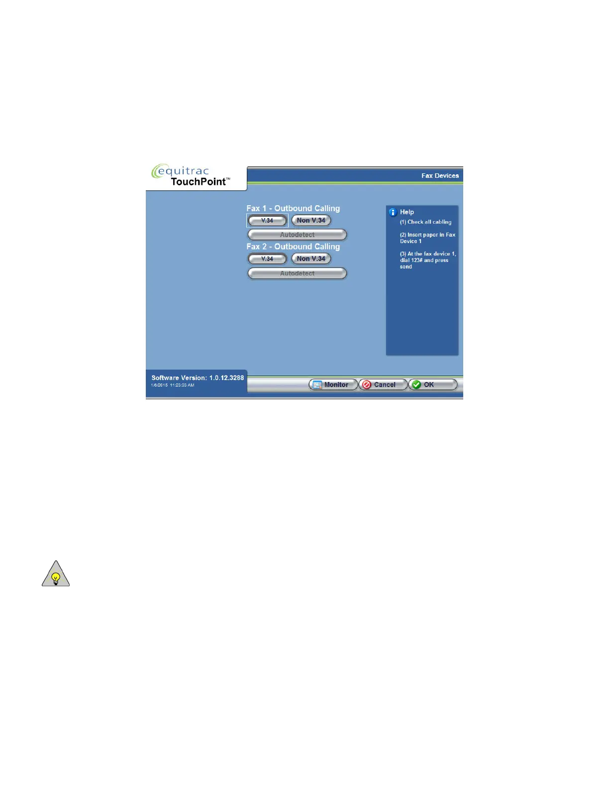The Fax Devices screen also provides access to the Fax Monitor tool used for field diagnostics and fax conversation