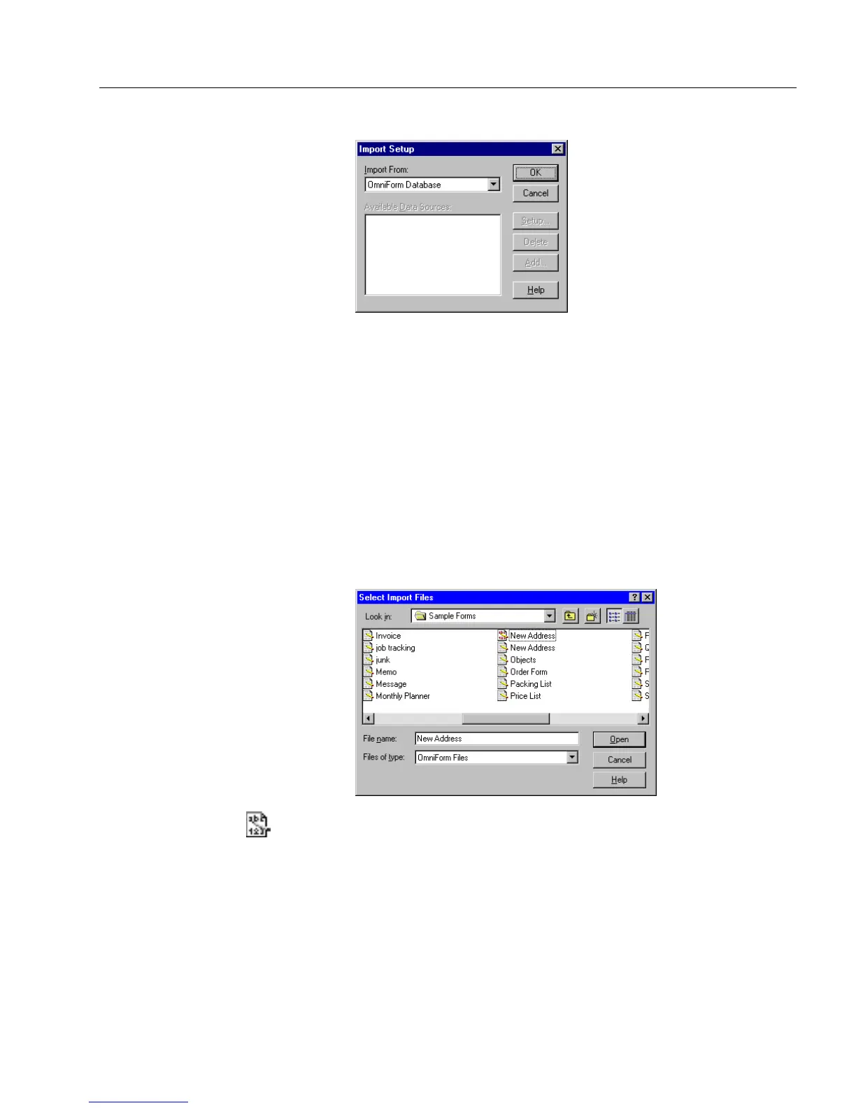 OmniForm Form or from an OmniForm Data file.