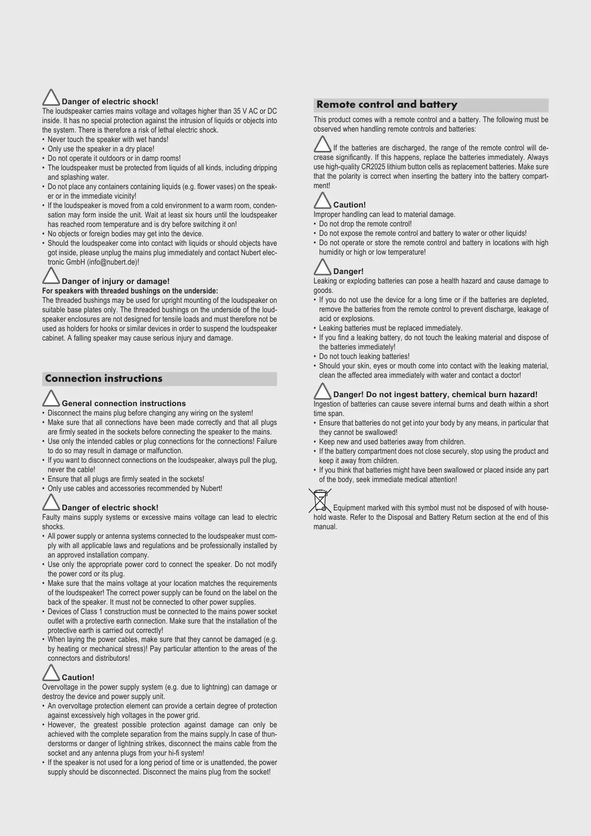 got inside, please unplug the mains plug immediately and contact Nubert elec-