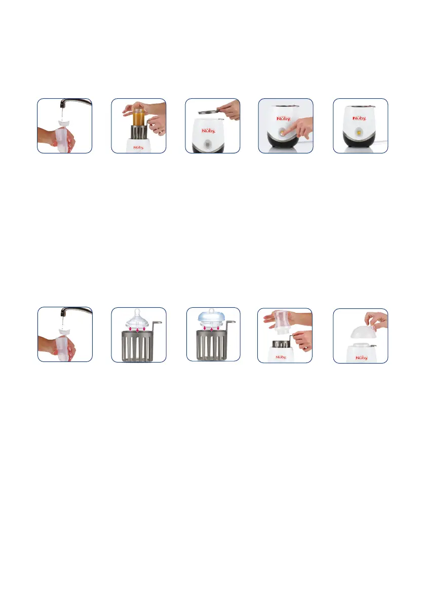 6. Una vez que ha finalizado el proceso de calentamiento, deje que el calentador se enfríe. Quite la mamadera y agítela bien (durante unos 10 segundos*)
