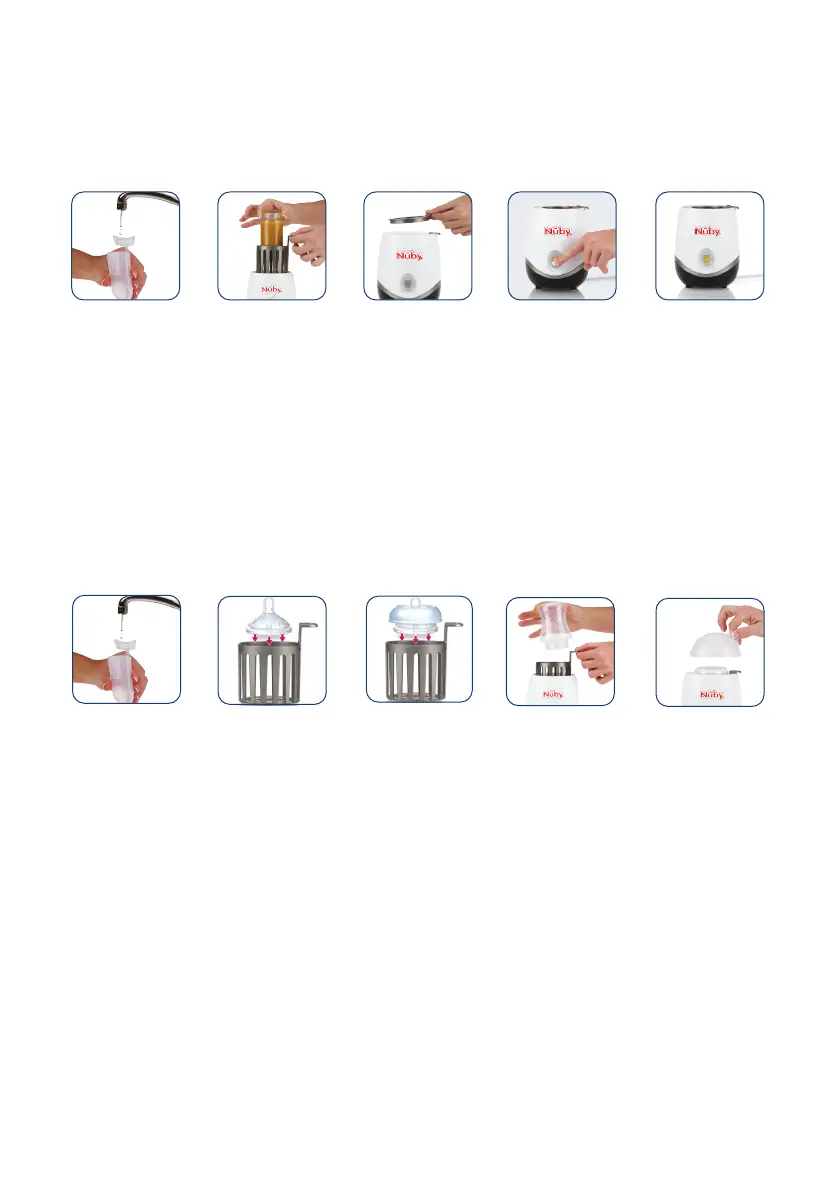 6. Assim que o aquecimento esteja concluído, deixe que o aquecedor arrefeça. Retire o biberão e agite-o bem (cerca de 10 segundos*) para uma