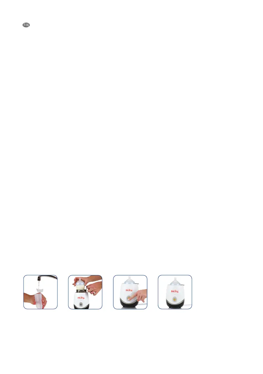 - Käytä laitteessa ainoastaan muovipulloja, jotka kestävät keittämistä tai lämmönkestäviä lasipulloja / -astioita.